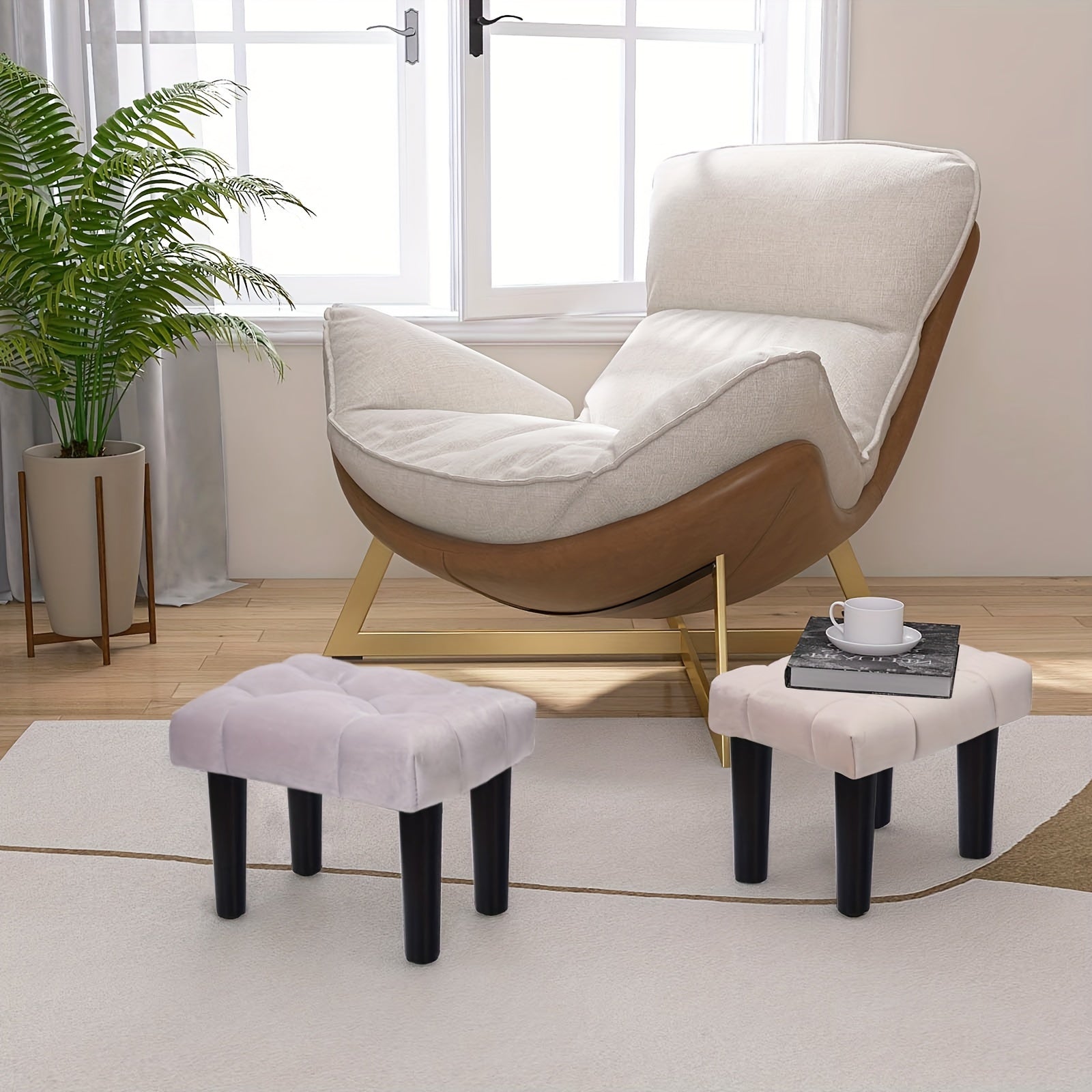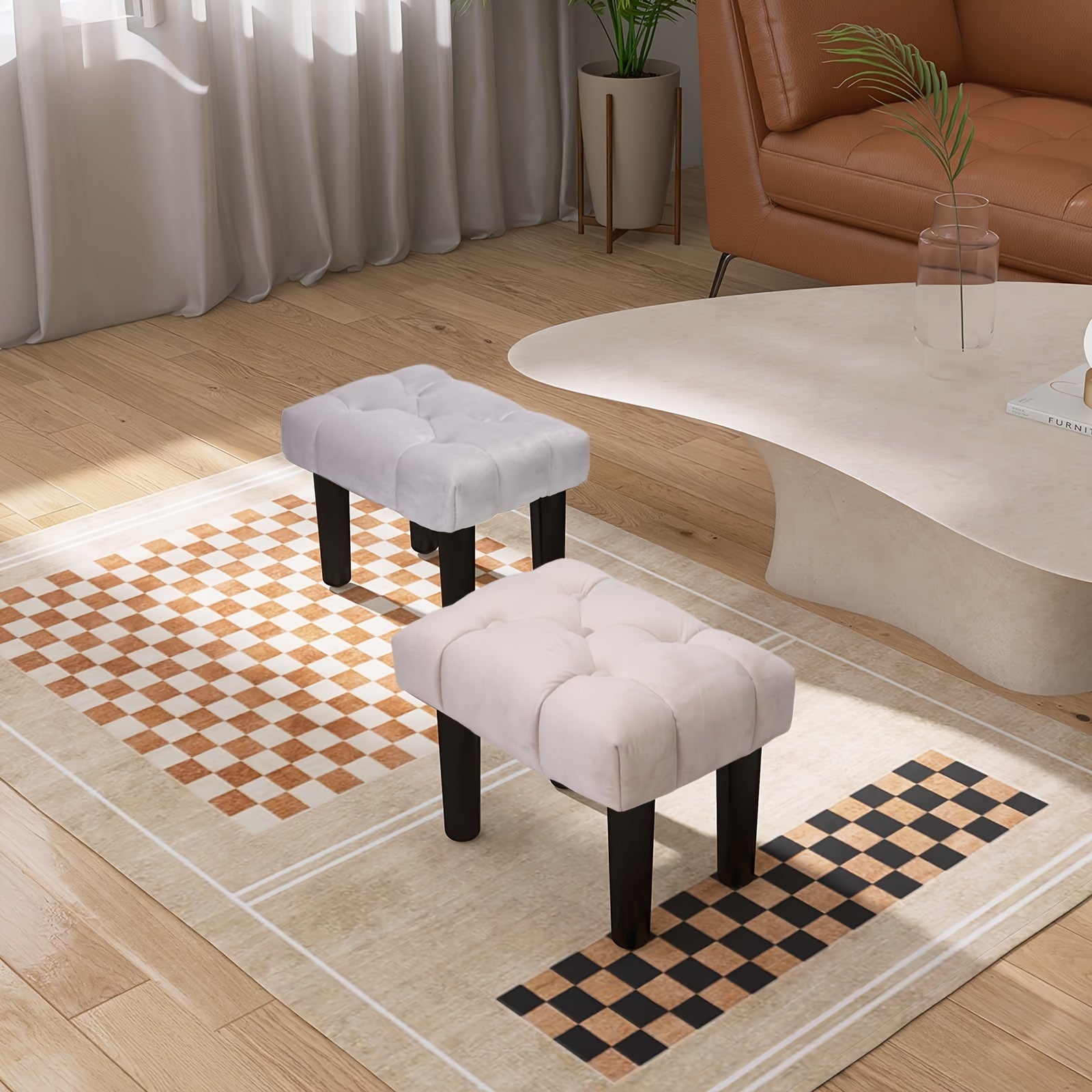 To‘g‘ri to‘rtburchakli O‘tirgich Ottoman, Velur qoplamali o‘rindiq va mustahkam qattiq yog‘och oyoqlar bilan - Yashash xonasi, kirish joyi yoki ofis uchun mukammal qo‘shimcha o‘tirish.