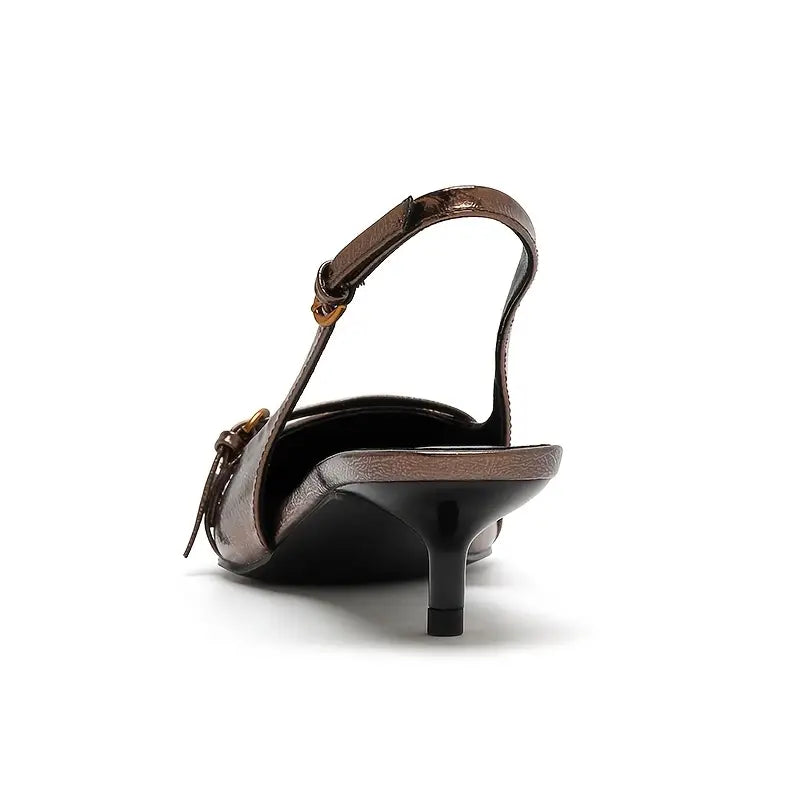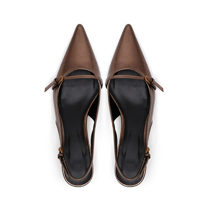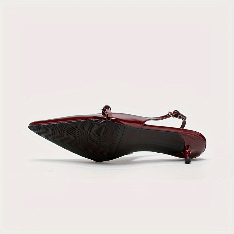 Qizil uchburchakli stiletto sandallar, bilakdan bog'langan va zamonaviy slingback dizayni bilan, kun bo'yi qulaylik va uslub uchun.