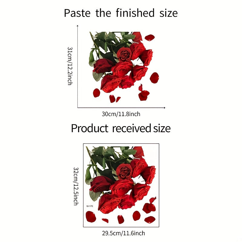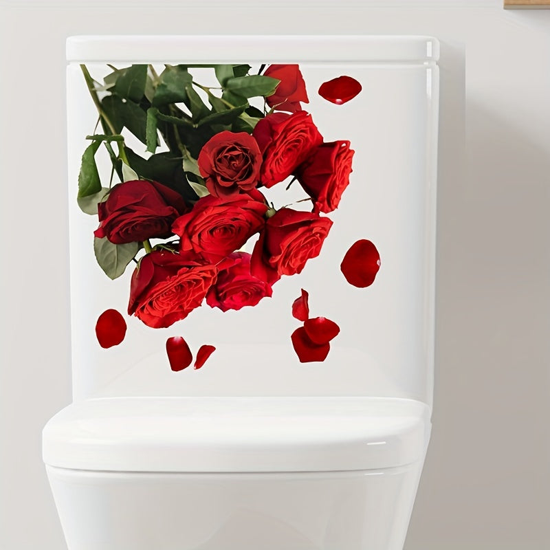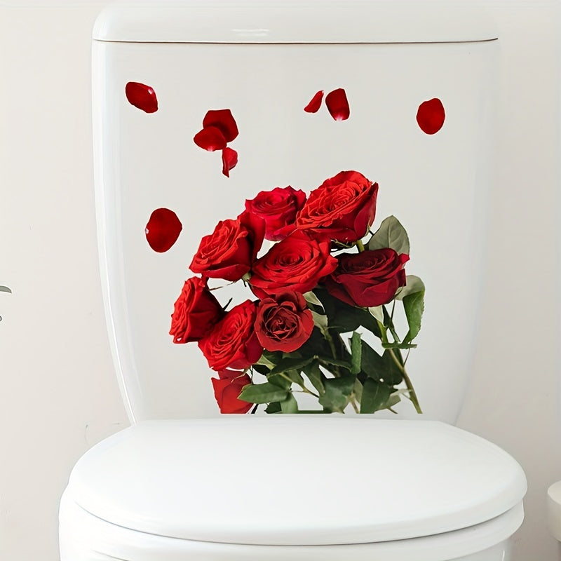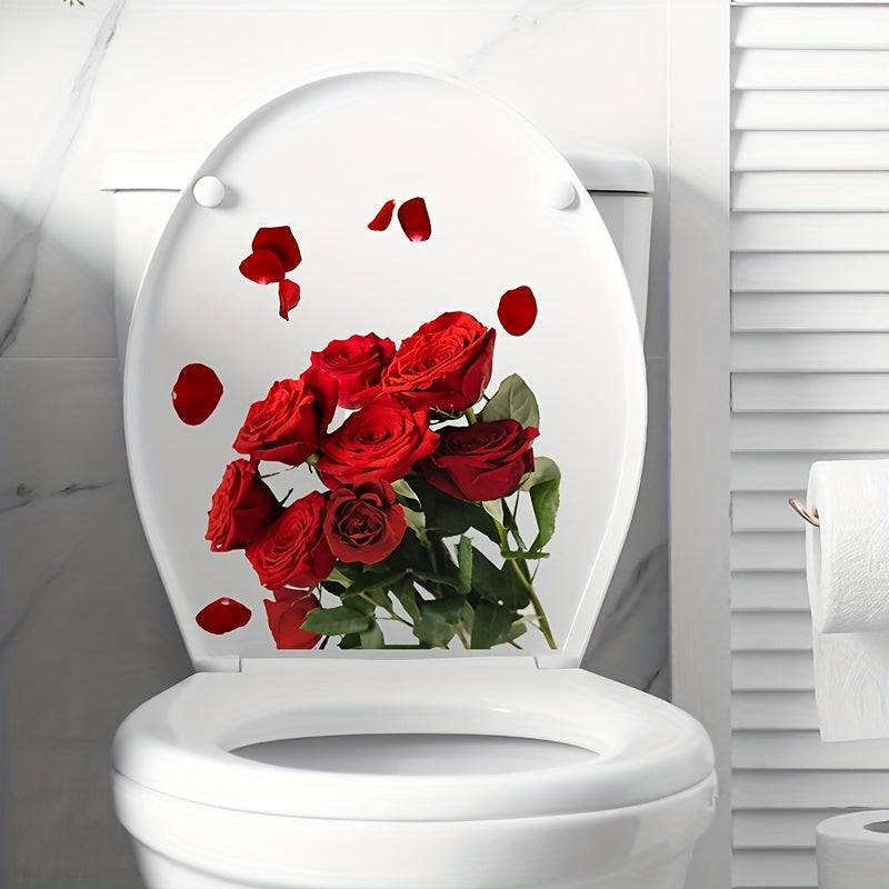 Qizil gul naqshli hojatxona qopqog'i dekali zamonaviy hammom bezaklari uchun.