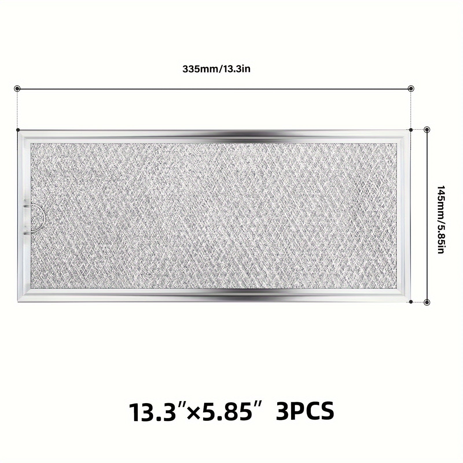 Hozirgi mikroto'lqinli pechka filtrini ushbu uchta GE WB06X10596 mikroto'lqinli pechka filtri to'plami bilan almashtiring. Har bir filtrning uzunligi 13.3 dyuym va kengligi 5.85 dyuym.