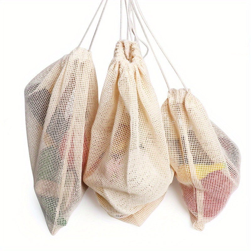 Qayta ishlatiladigan to'rli sabzavot sumkalari, mahsulotlarni saqlash va sovg'a berish uchun ideal. Oson kirish va tartibga solish uchun tortish qismi dizayni mavjud. Plastik chiqindilarni kamaytirish uchun ajoyib.