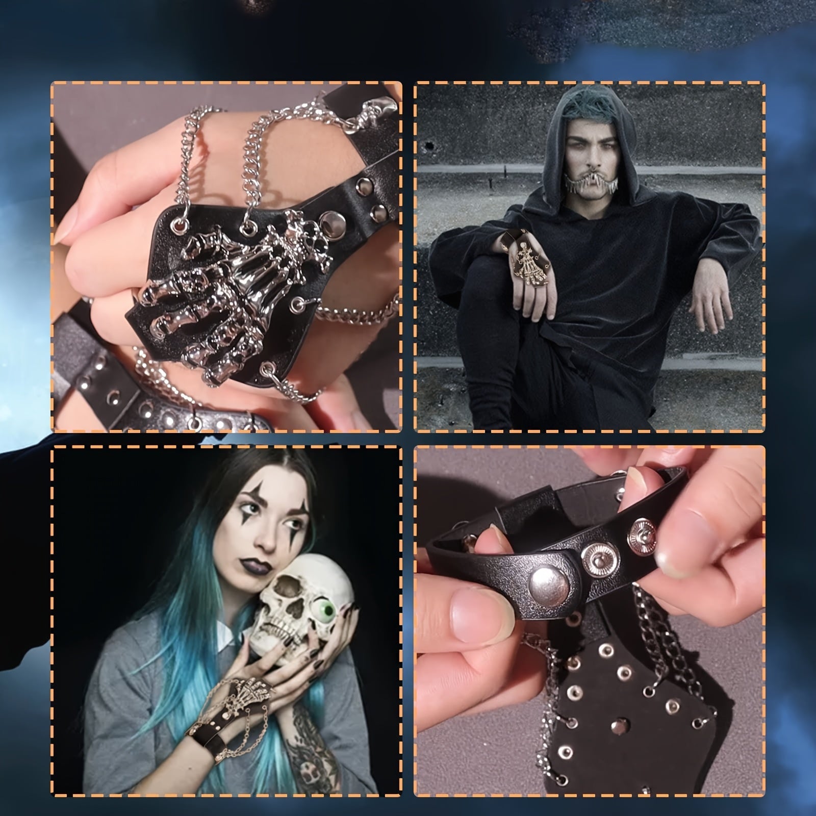 Uniseks Punk Rok Faux Charm bilan bosh va spider gotik dizayni bilan bangle