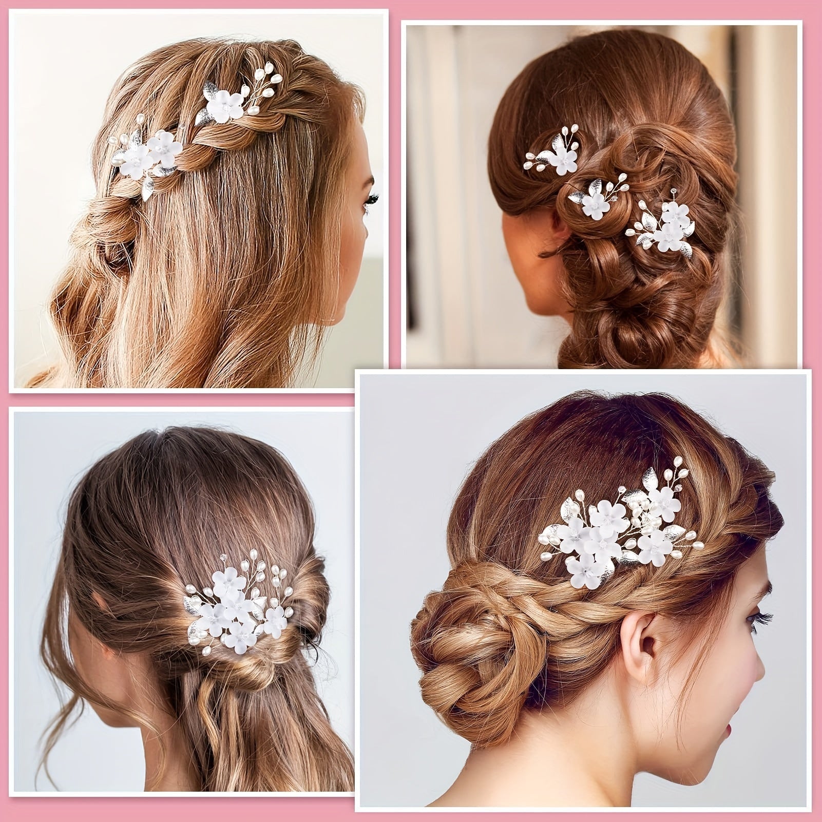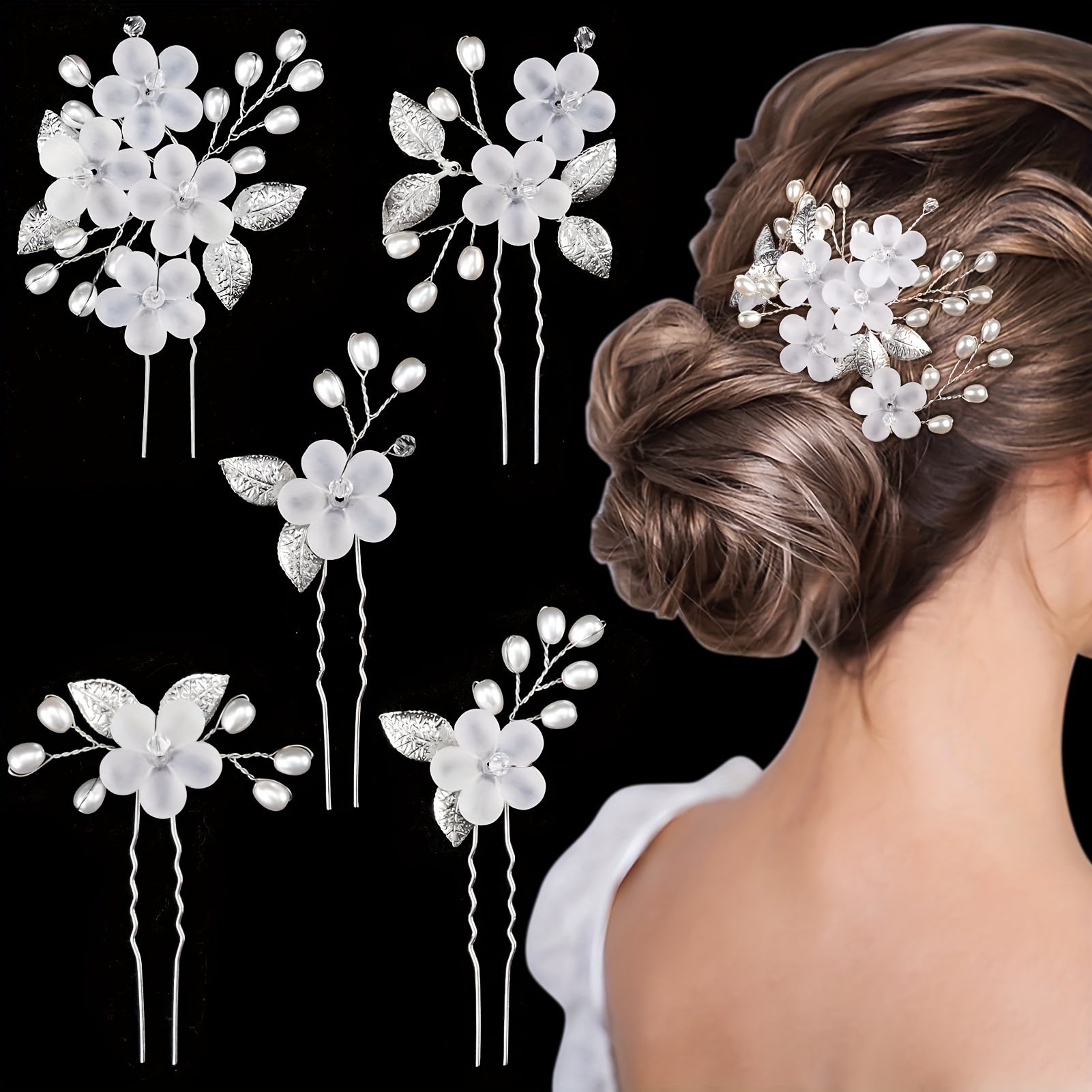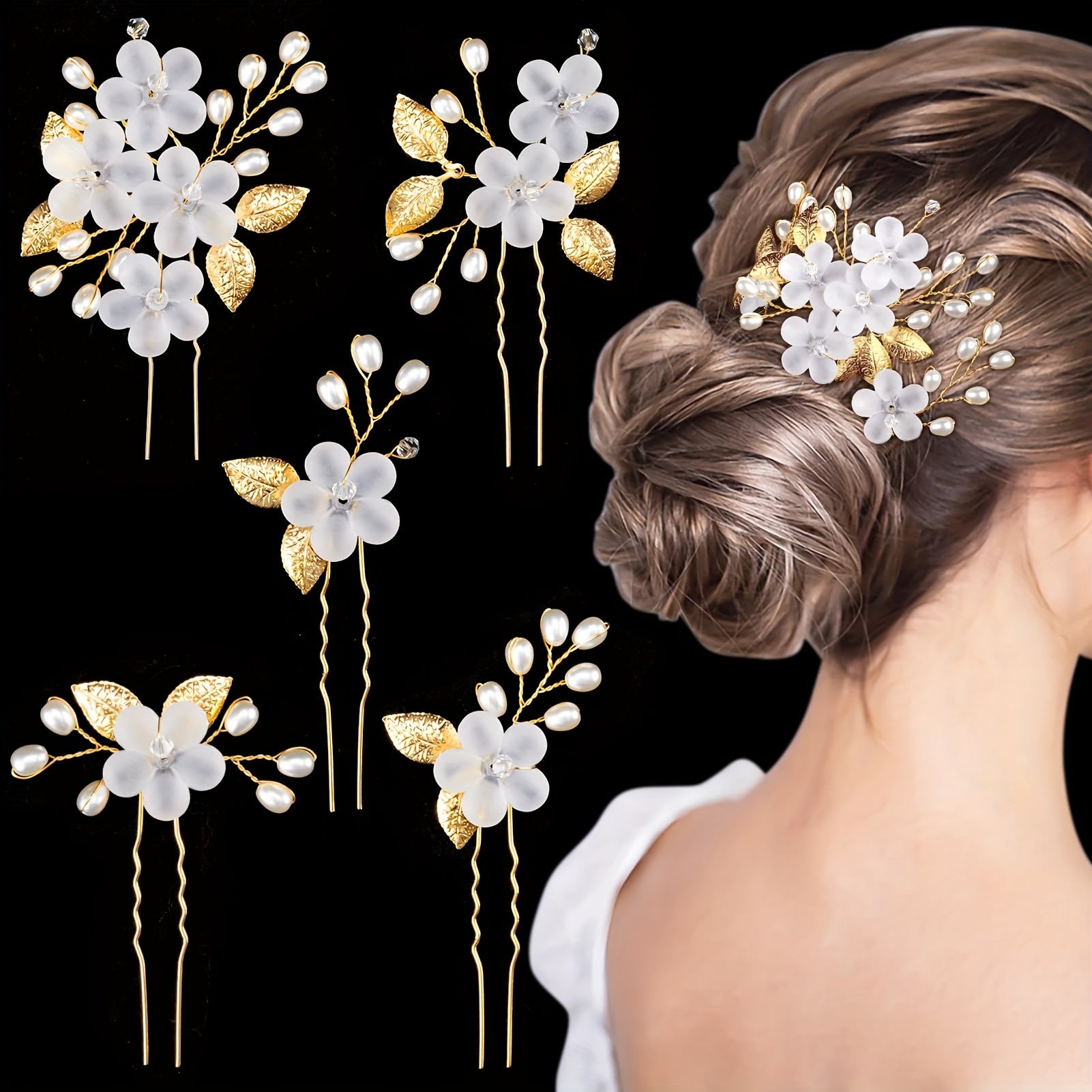 Ayollar uchun 5 ta U-shaklidagi sochbog'lar to'plami, gul va marjonli detallari bilan
