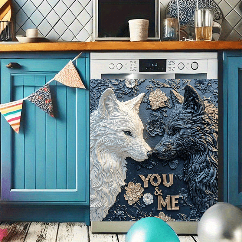 Romantik Boʻrdoq Juftligi Magnit bilan "Siz va Men" Gul Relief Sanʼati Suv oʻtkazmaydigan Muzlatgich Dekori 58.5x65 sm