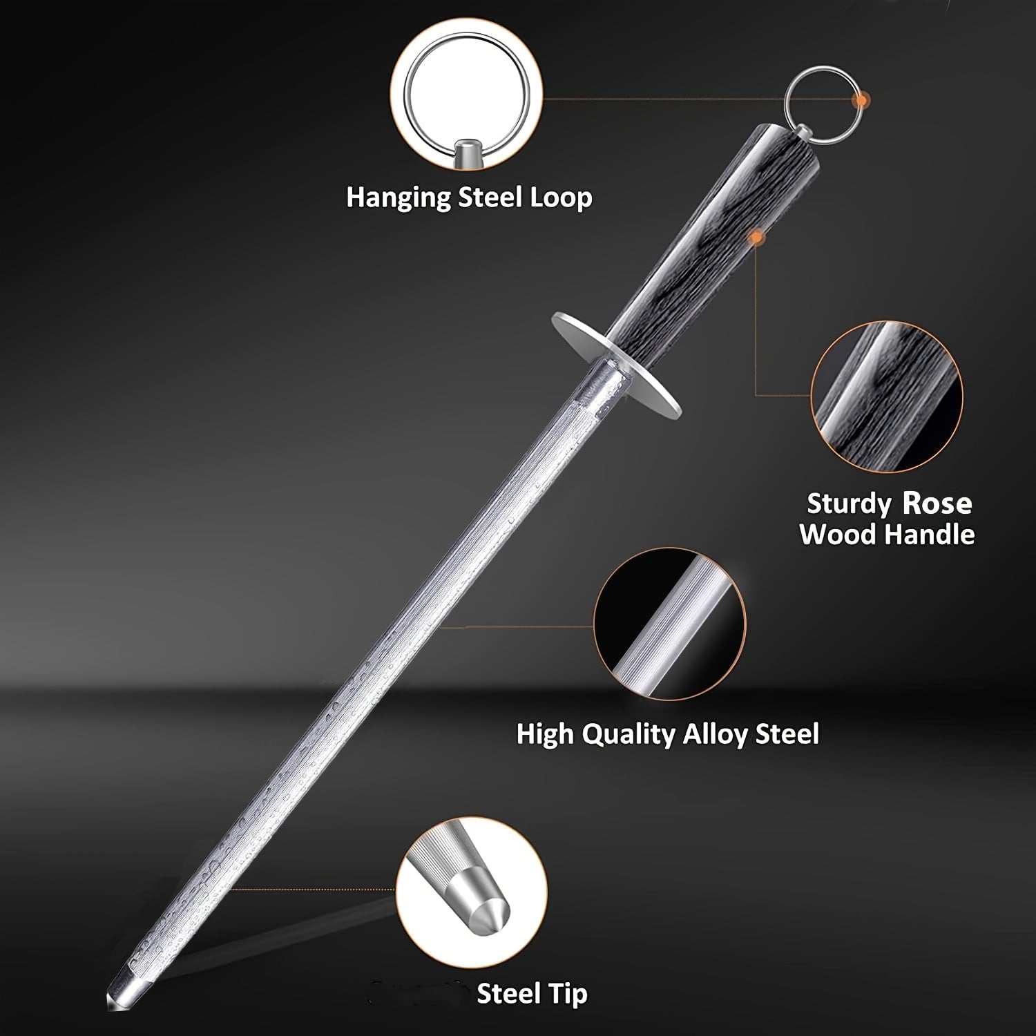 25.4 см po'latdan yasalgan honing rod oshxona va ov qilish pichog'lari uchun qattiqlashtirish rod