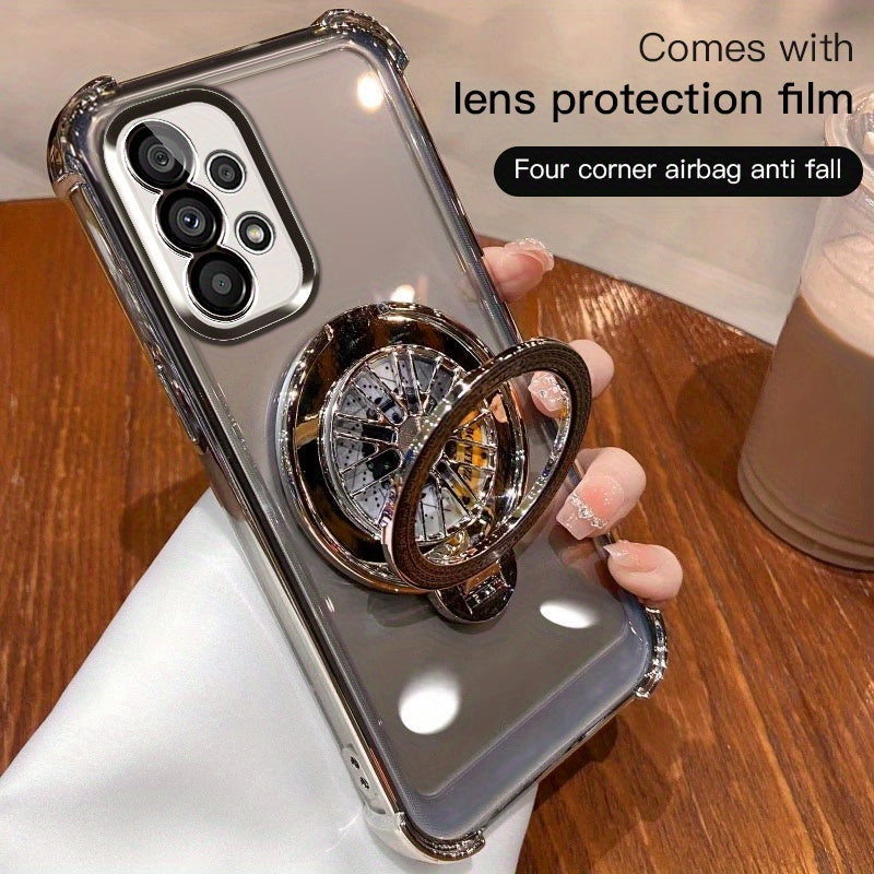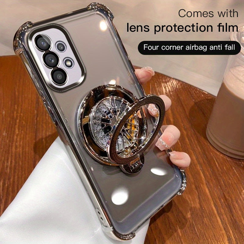 Galaxy A03-A55 va A73 seriyali mobil telefon qopqog'i uchun to'rt burchakli tushishdan himoya qiluvchi aylanuvchi gyro elektroplitalangan tutqich.