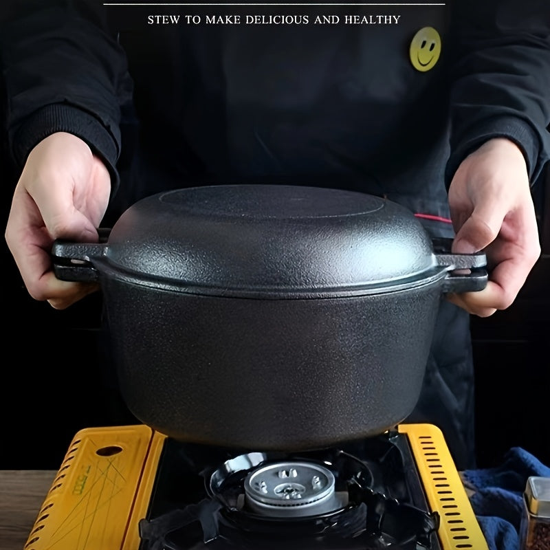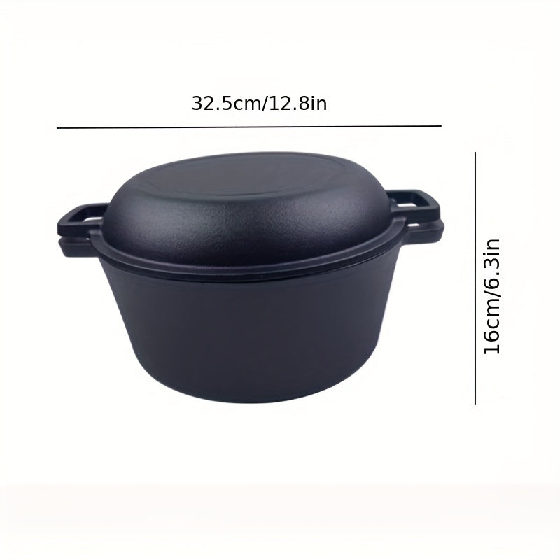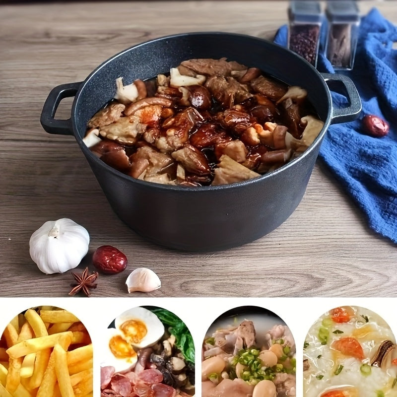 26 sm doira shaklidagi quyma temir golland qozoni, ikki tutqichi bilan - qovurish va qaynatish uchun qalin, qoplamasiz, induktsion plitalarda ishlatish uchun