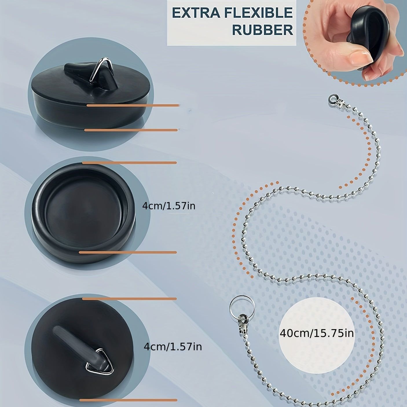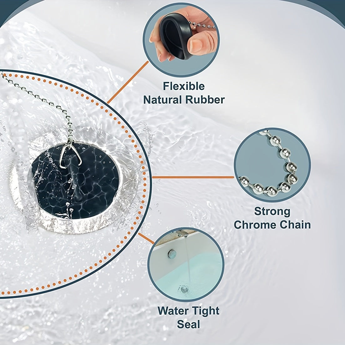 Zanjirli kauchuk hammom plagi, 4 sm diametr, o'rnatish va tozalash oson.