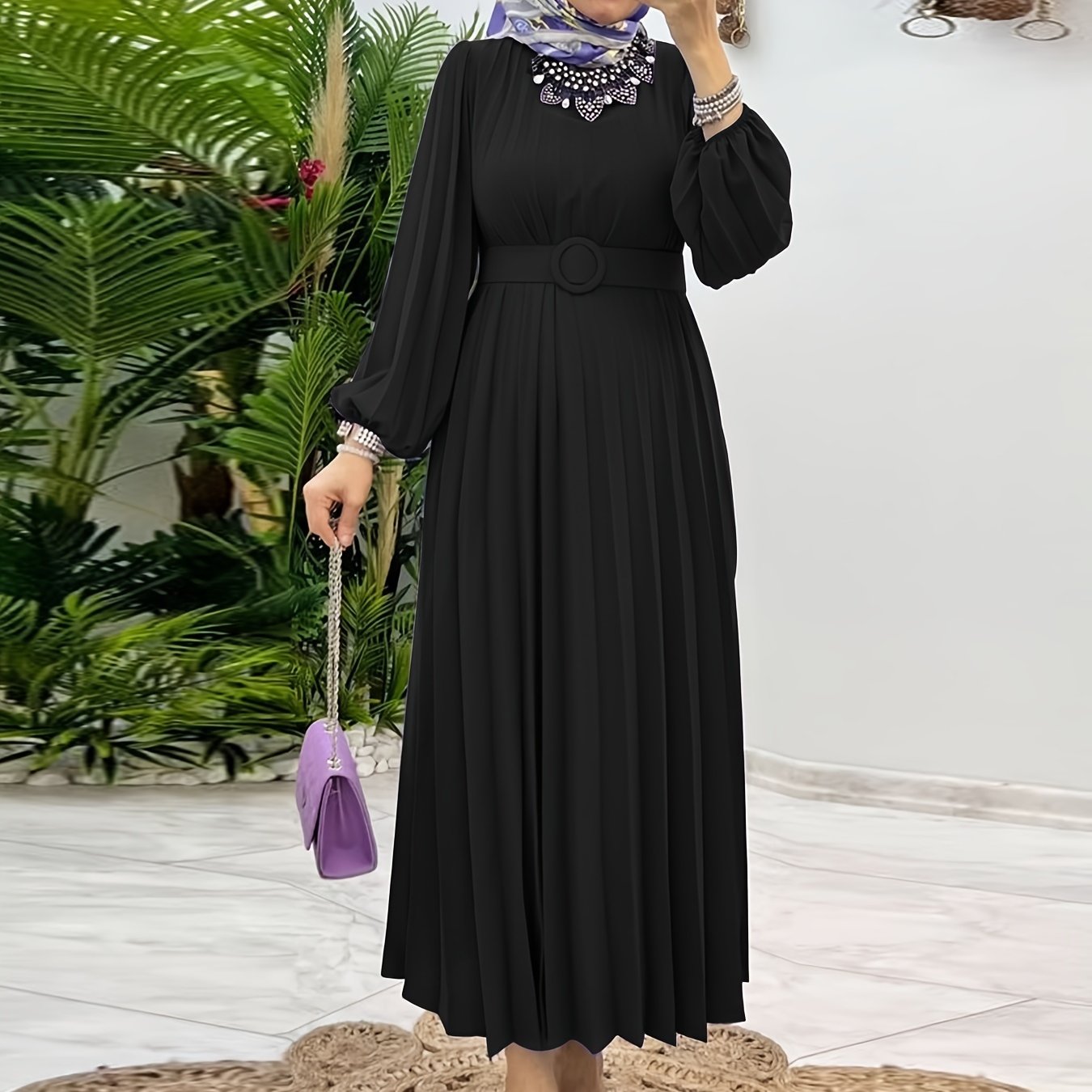 Qirqilgan qirra, uzun qo'lqonli, crew neck libos, ayollar uchun nafis maxi uzunlikdagi abaya.
