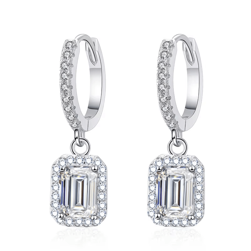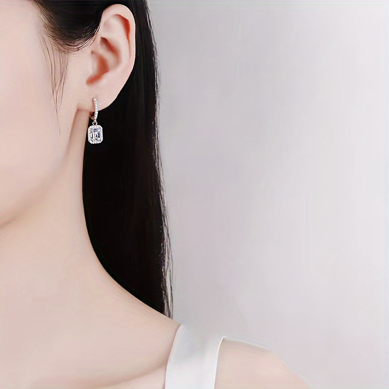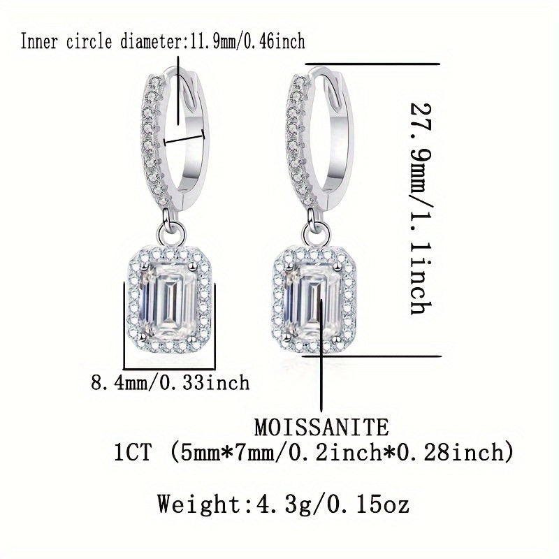 Ayollar uchun kumush sirg'alar, 1 karatli to'g'ri burchakli Moissanit bilan, Bohem moda zargarlik buyumlari, kundalik va to'y kiyimlari uchun