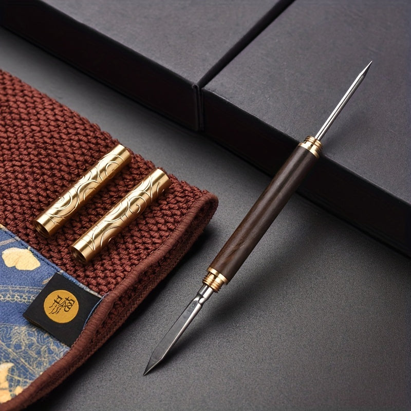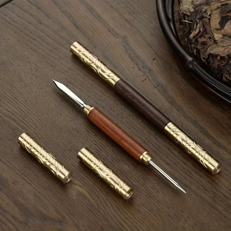 Sandal daraxti va Atrova daraxti ikki boshli Ruyi choy pichog'i oltin halqa bilan va burmalangan choy pichog'i, sandal daraxti choy ignasi