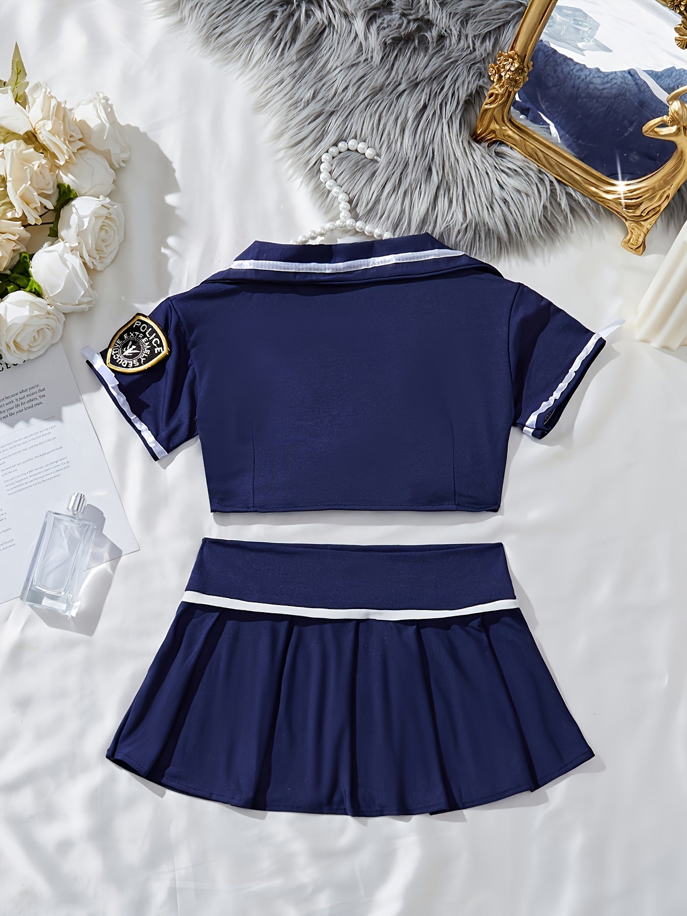 To'plamga sexy ichki kiyim bluzkasi va yubka kiradi.