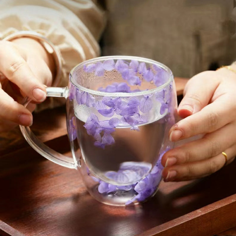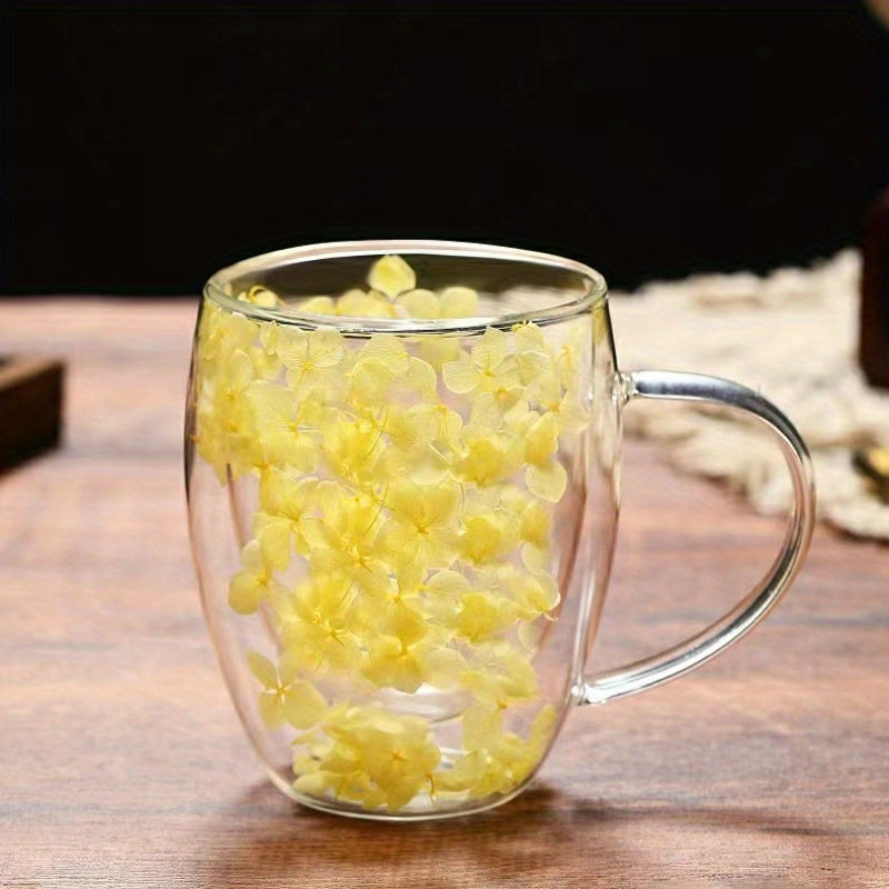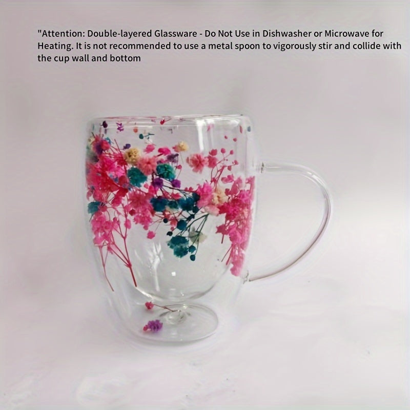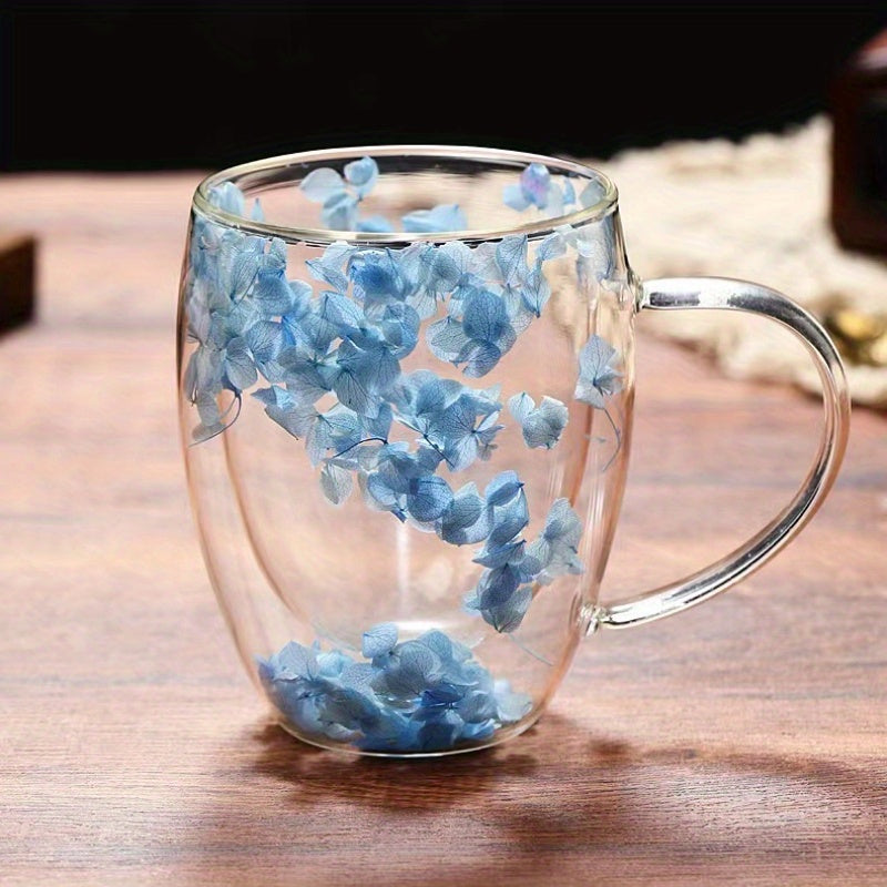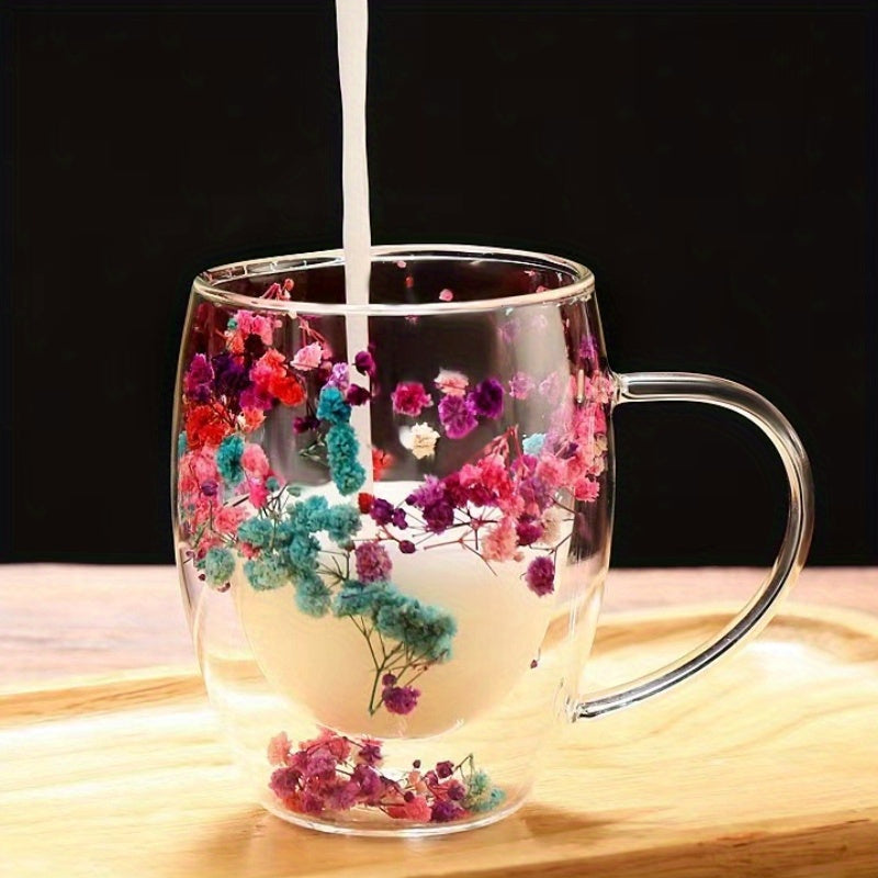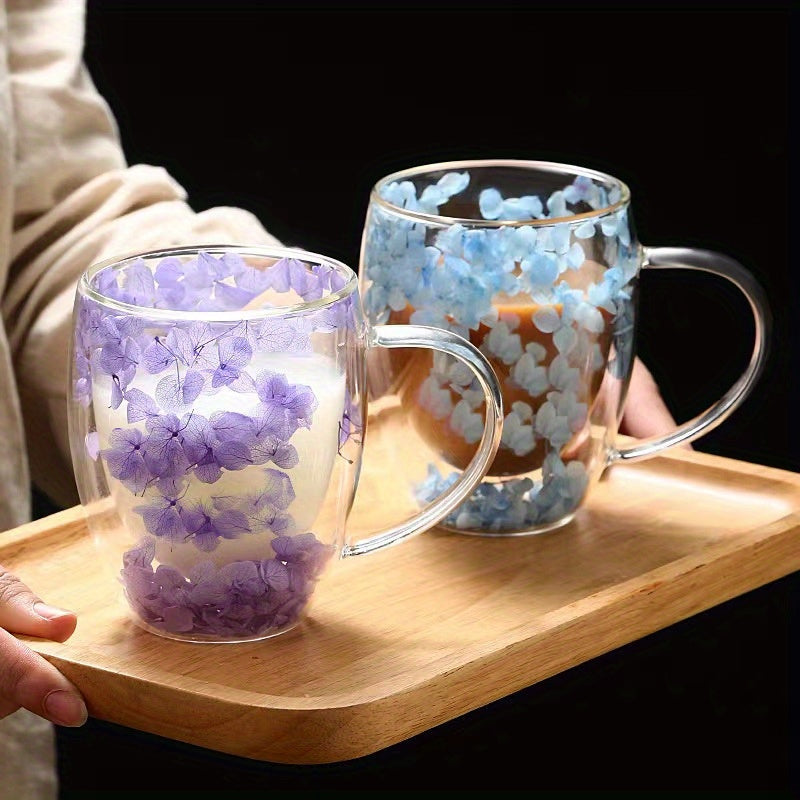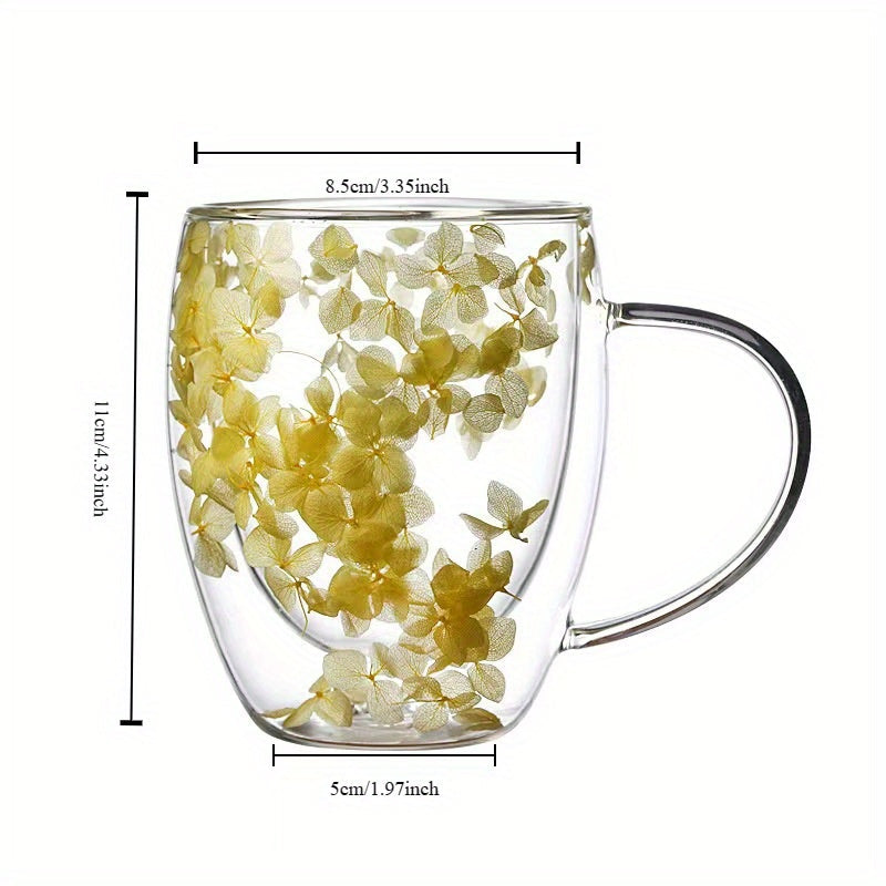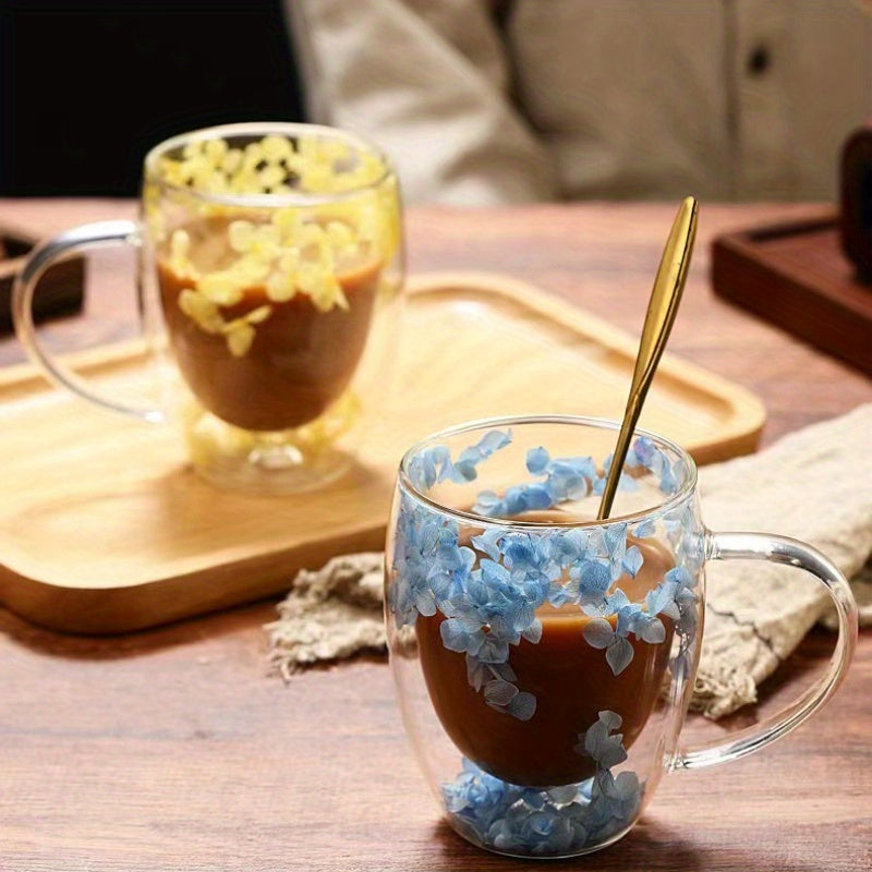 1 dona gullar naqshli shisha kofe stakanlari to'plami, go'zal ikki devorli yuqori borosilikat shisha stakanlar, issiq yoki sovuq ichimliklar uchun zamonaviy choy stakanlari, noyob shisha idishlar to'plami