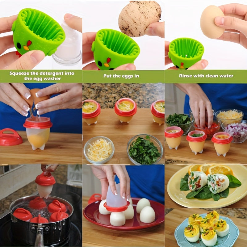 1 dona yopishqoq silikon tuxum pishirgich - oson tozalanadigan qattiq pishirilgan tuxum ushlagich, tuxumsiz tuxum pishirish stakanlari, nonushta uchun tez tuxum poach qilish qoliplari, turli ranglarda mavjud