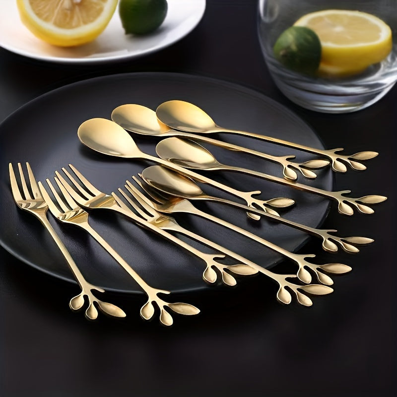 10 ta nafis oshxona asboblari to'plami, oltin zanglamaydigan po'latdan yasalgan sakura gullari qoshiq va vilkalarini o'z ichiga oladi. Ovqatlanish va mehmondorchilik uchun mukammal, bu idish-to'plam funksionallikni noziklik bilan birlashtiradi.