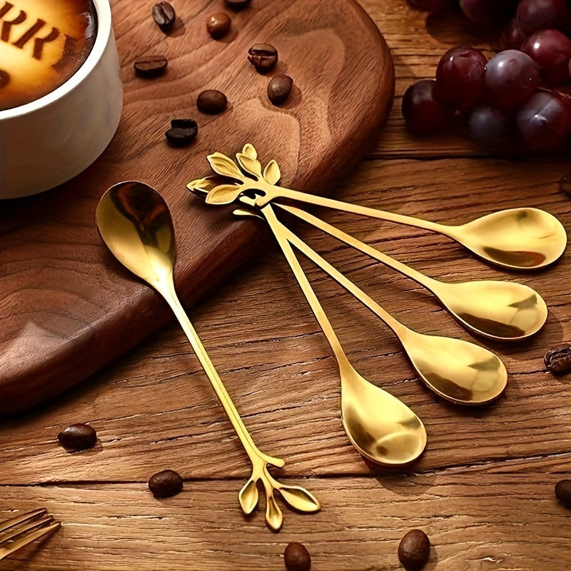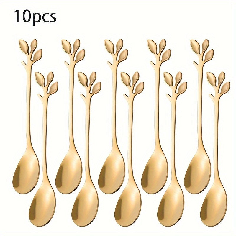 10 dona zanglamas po'latdan yasalgan barg shaklidagi shirinlik qoshiq to'plami, to'ylar, partiyalar va oshxona uchun ideal - oziq-ovqat iste'moli uchun xavfsiz.