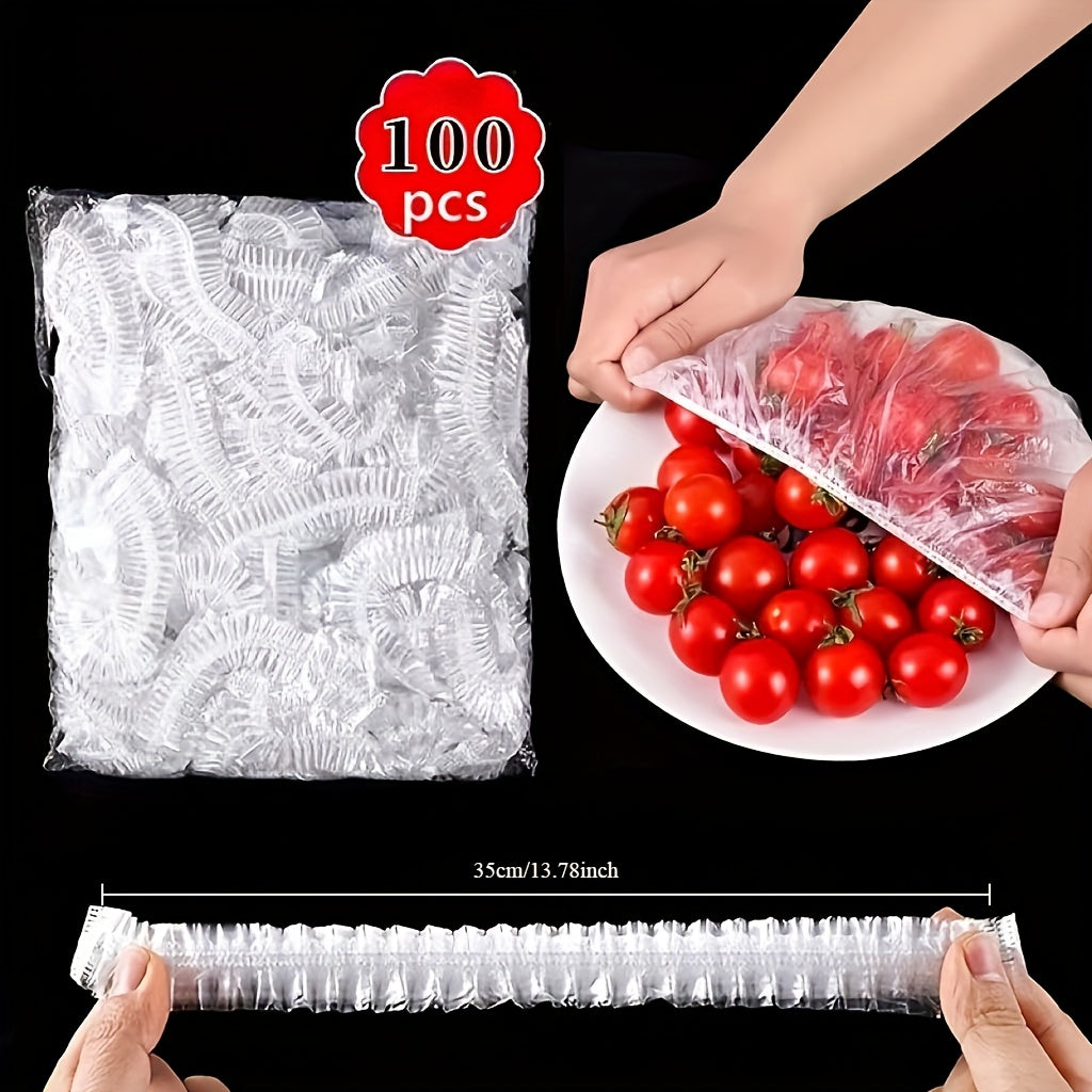100 ta elastik bir martalik oziq-ovqat qopqog'i to'plami - yangilikni saqlaydi, chang va hidlarni ichkariga kiritmaydi - qoldiqlar, mevalar va boshqalar uchun ideal - oshxonada zarur saqlash yechimi