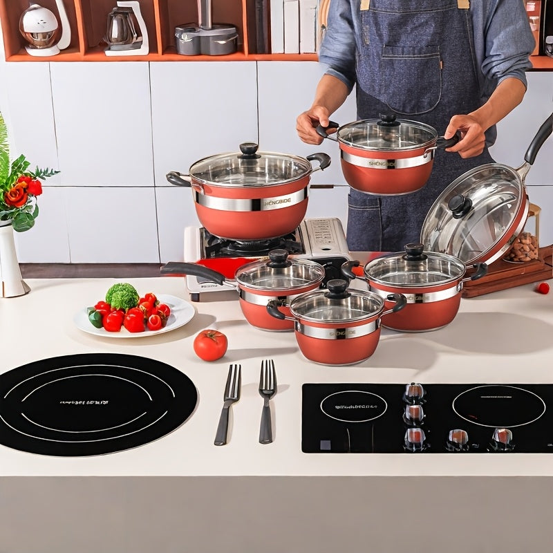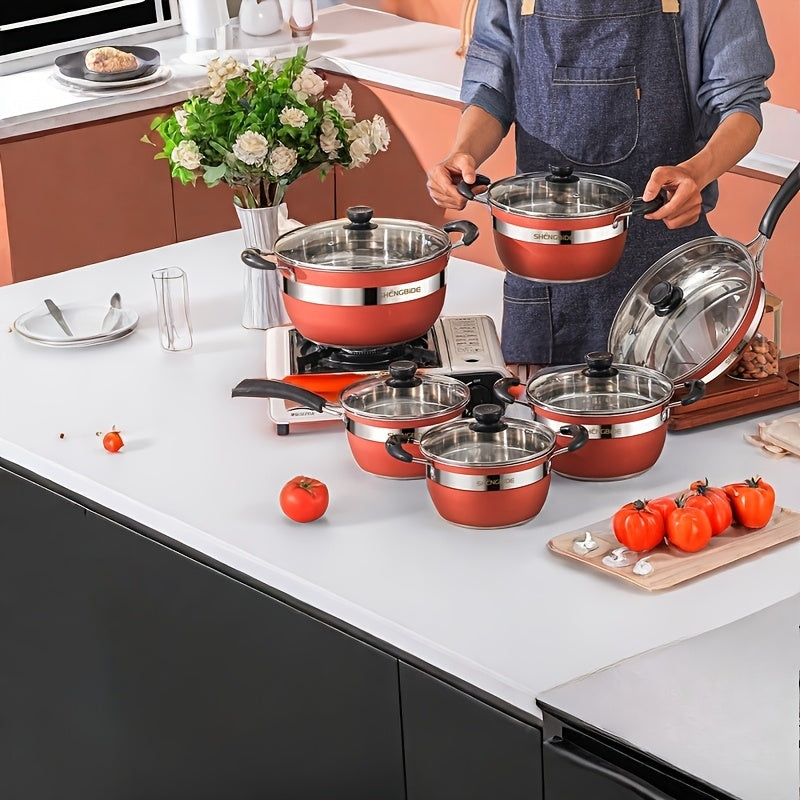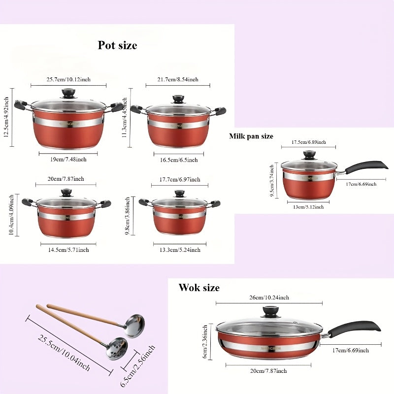 12-14 dona zanglamas po'latdan yasalgan qozonlar to'plami, amaliy sho'rva qozoni, qovurish panasi va qoshiqni o'z ichiga oladi. Induksion pechlar va gaz pechlari bilan mos keladi.