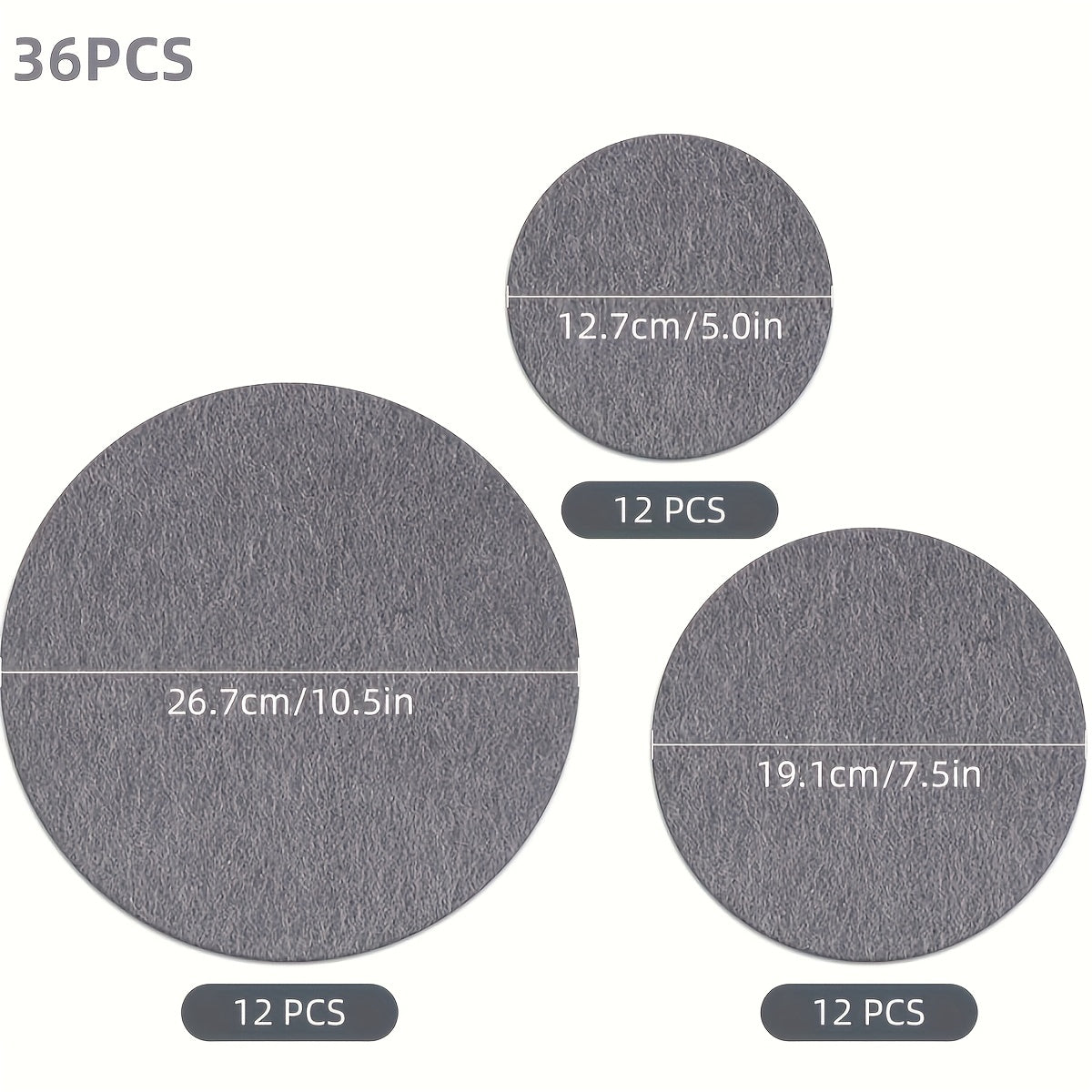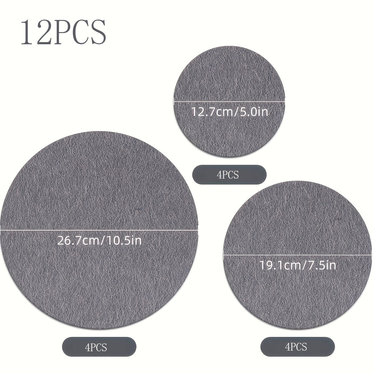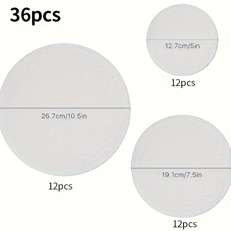 12 dona yumaloq paxta idish ushlagichlari va plastinka bo'laklari to'plami - 3 o'lchamda keladi, chizish va issiqlikka chidamli, oshxona idishlari, plastinkalar va saqlash uchun ideal. PC materialidan tayyorlangan, elektr energiyasi talab qilinmaydi.