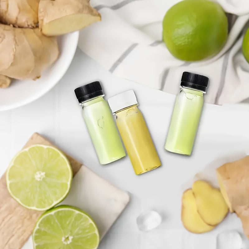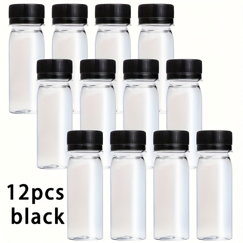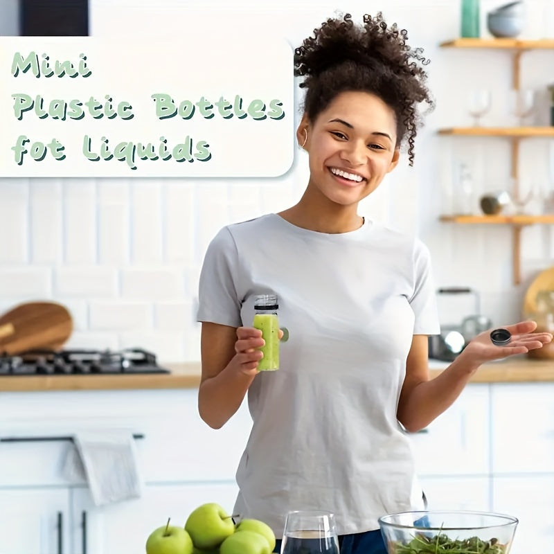 12 ta kichik plastik shisha to'plami, 2oz, yopiladigan, suyuqliklar uchun ko'k funnel bilan
