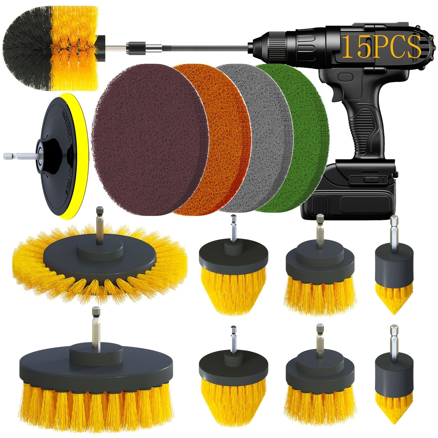 Tozalash va silliqlash uchun 15 ta burg'ulash cho'tkasi qo'shimchalari, quruq va buffing padlari bilan