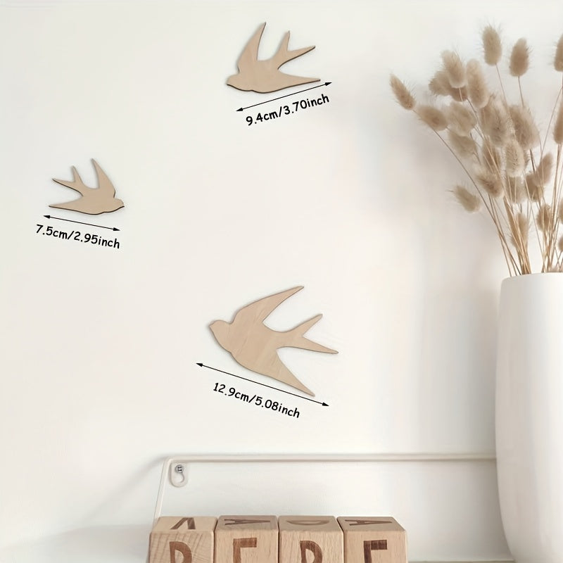 2, 3 yoki 6 ta Yog'och Mini Devor Stiker Dekoratsiyalari to'plami, Qushlar, Bulutlar va Gullar bilan. Ushbu Qayta ishlatiladigan Yaratijiy Yog'och Devor Dekoratsiyalari bilan Bolangizning Xonasini bezang.