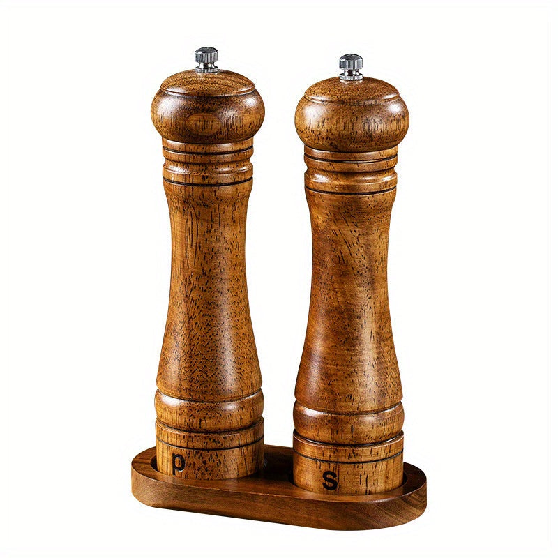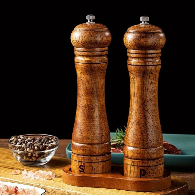 2 yoki 3 ta yog'och tuz va murch maydalagichlar to'plami, plastinka bilan, qo'lda dengiz tuzi va murch maydalagich