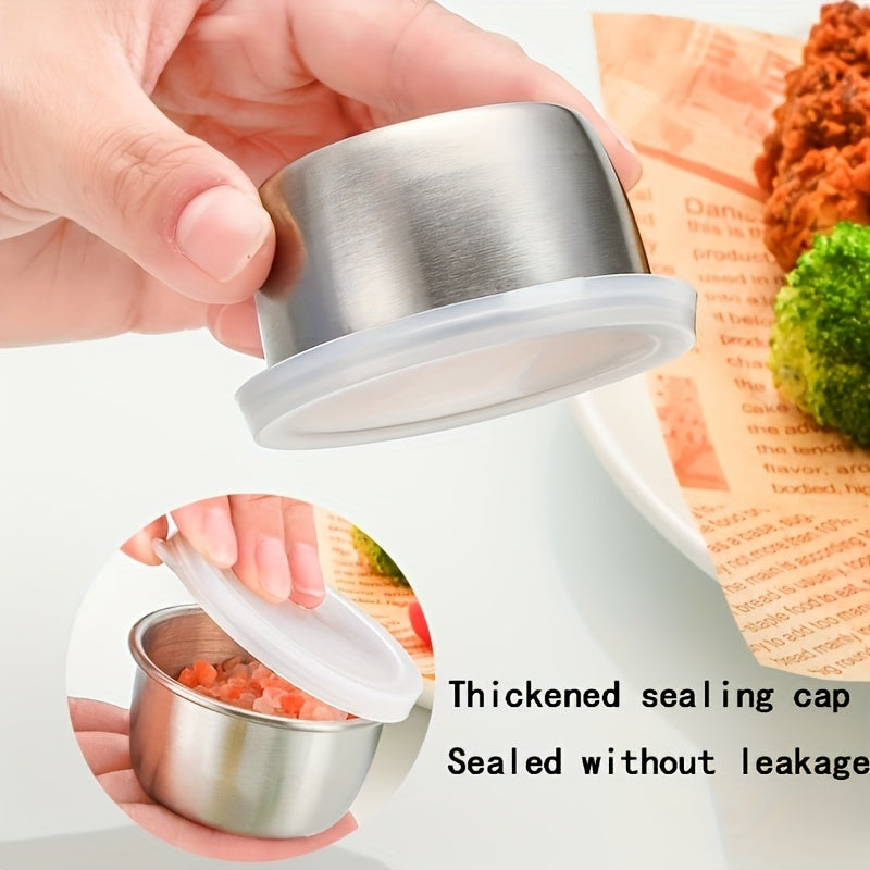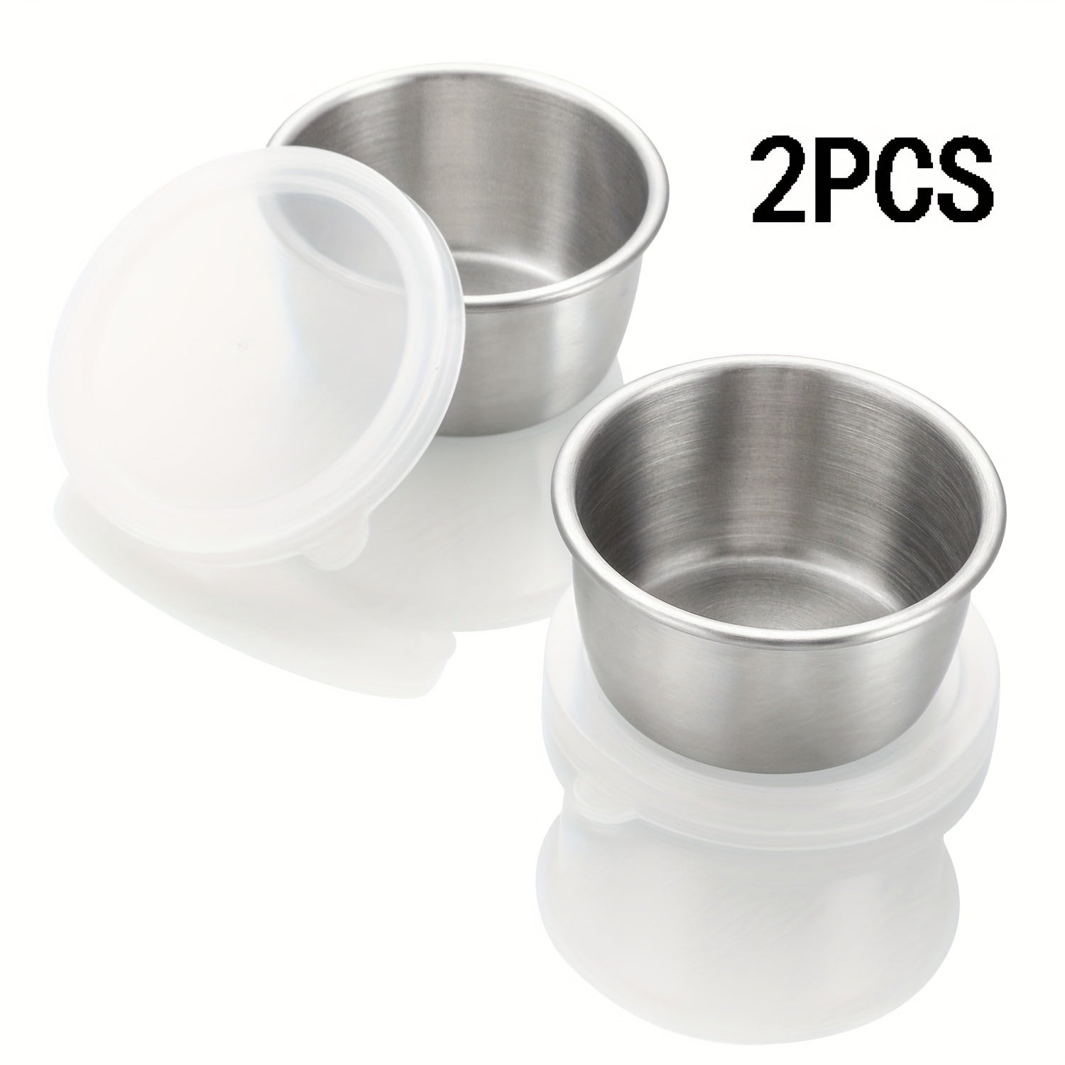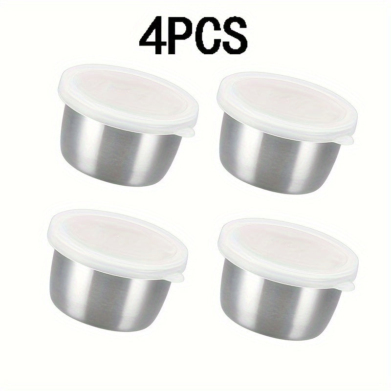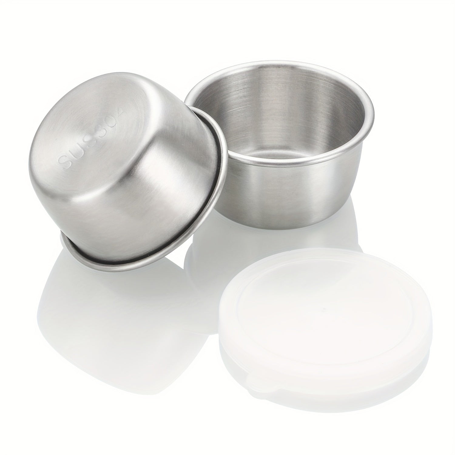 2/4/6 dona 1.6oz qotib qolmaydigan zanglamas po'latdan yasalgan salat soslari idishlari, shaffof qopqoq bilan, bento qutilari va harakatda ovqatlar uchun ideal.