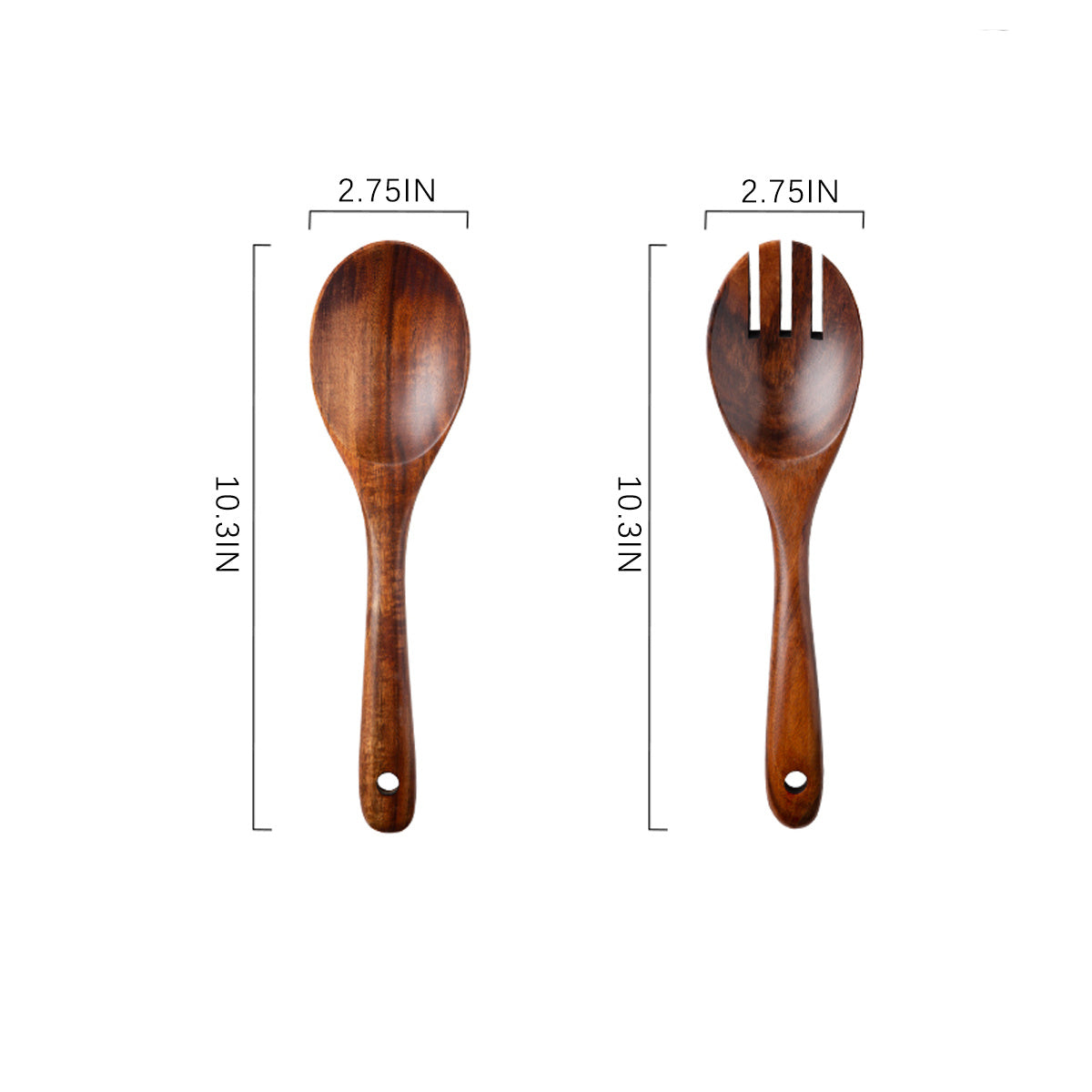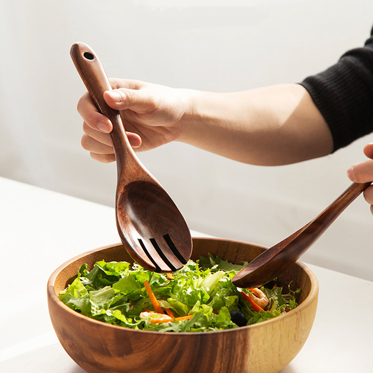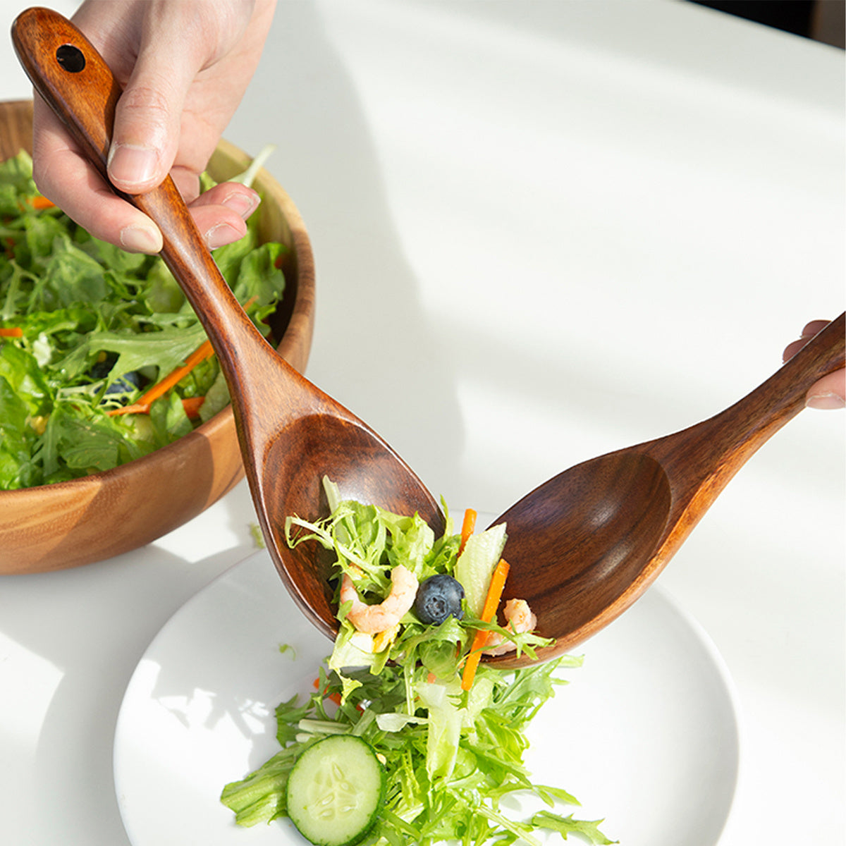 2 ta Akatsiya yog'och salat qoshiq to'plami, uzun tutqichlar bilan