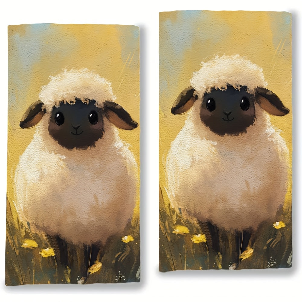 2 ta Jozibali Qo'y Oshxona Sochiqlari - Ultra Yumshoq, Juda Singdiruvchi Polyester Materialdan Yasalgan, Tozalash Oson, Har Bir Sochiqning O'lchami 40.64x60.96 sm - Oshxona Dekoriga Bayramona Tush Berish Uchun Ideal va Kundalik Foydalanish Uchun Mos