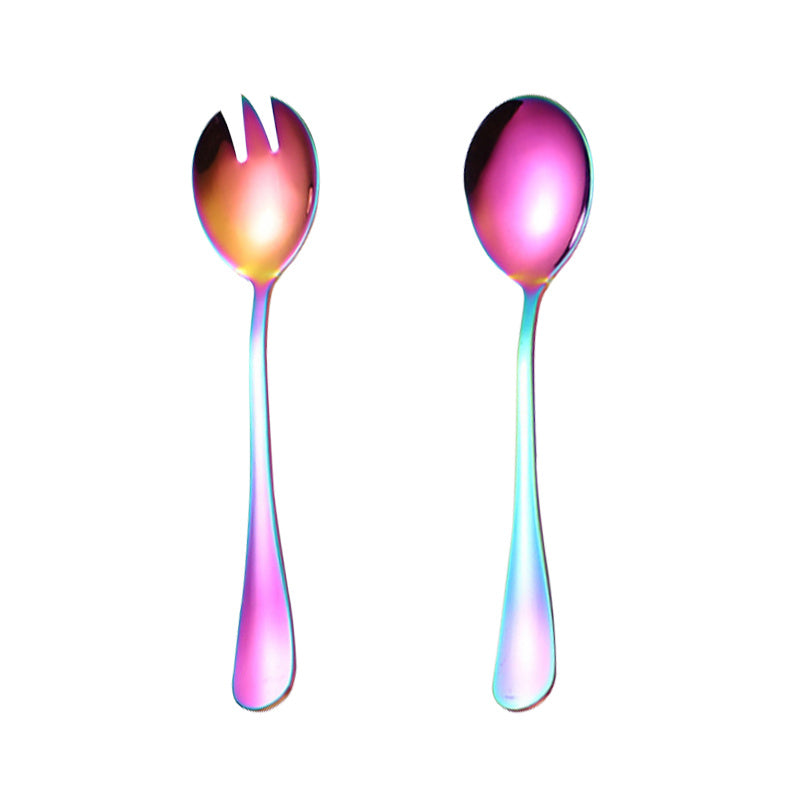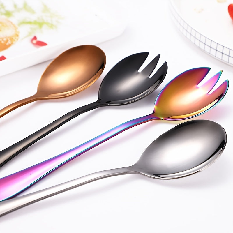 Turli taomlar uchun 2 dona oltin qoplamali zanglamas po'latdan yasalgan salat asboblari to'plami.