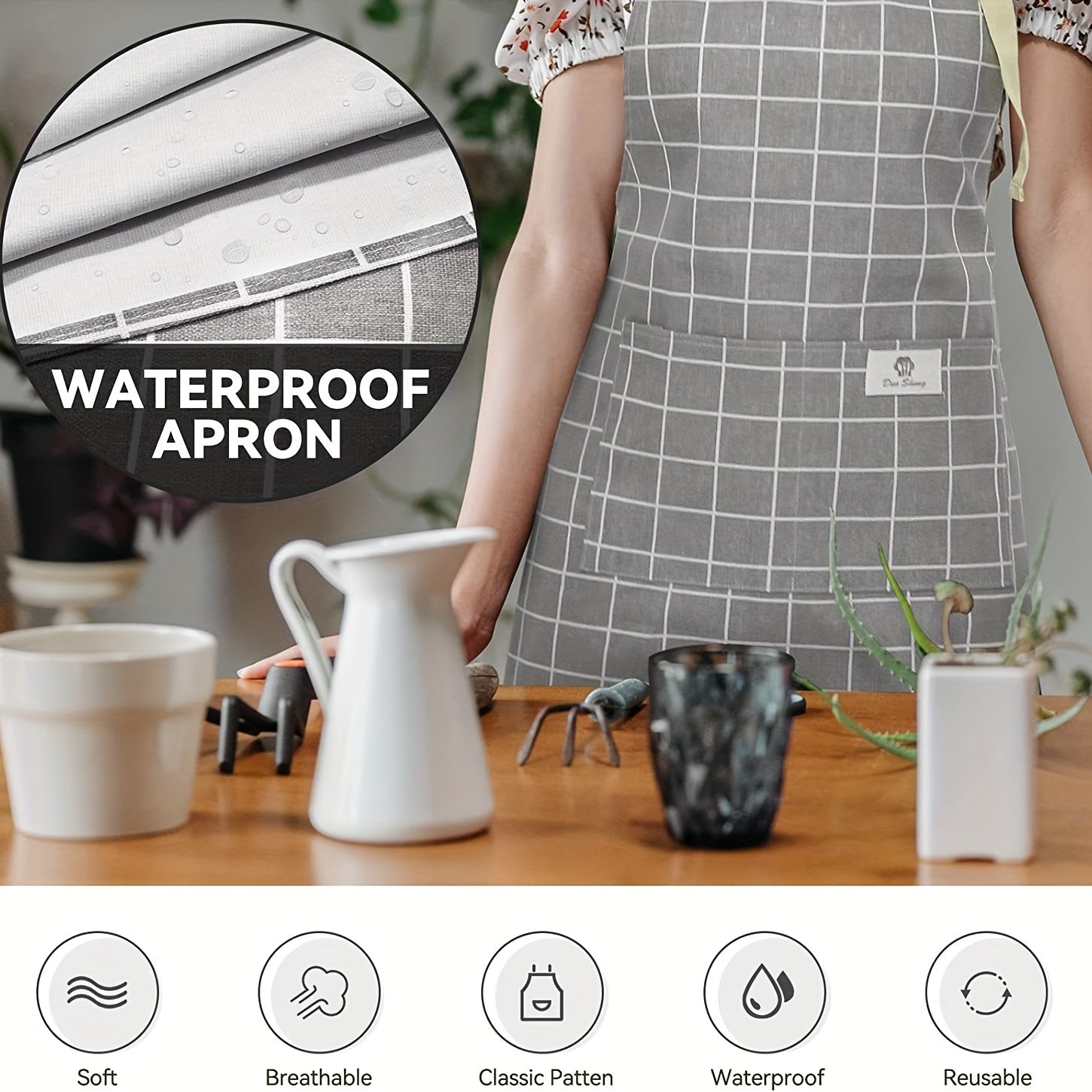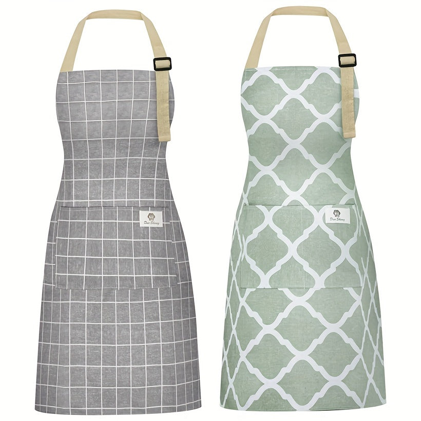 2 dona to'qima suv o'tkazmaydigan oshxona aproni, cho'ntaklar bilan, moslashuvchan bo'yin tasmasi va uzoq bog'ichlar bilan, pishirish, oshpaz yoki uy oshxonasi uchun foydalanish uchun