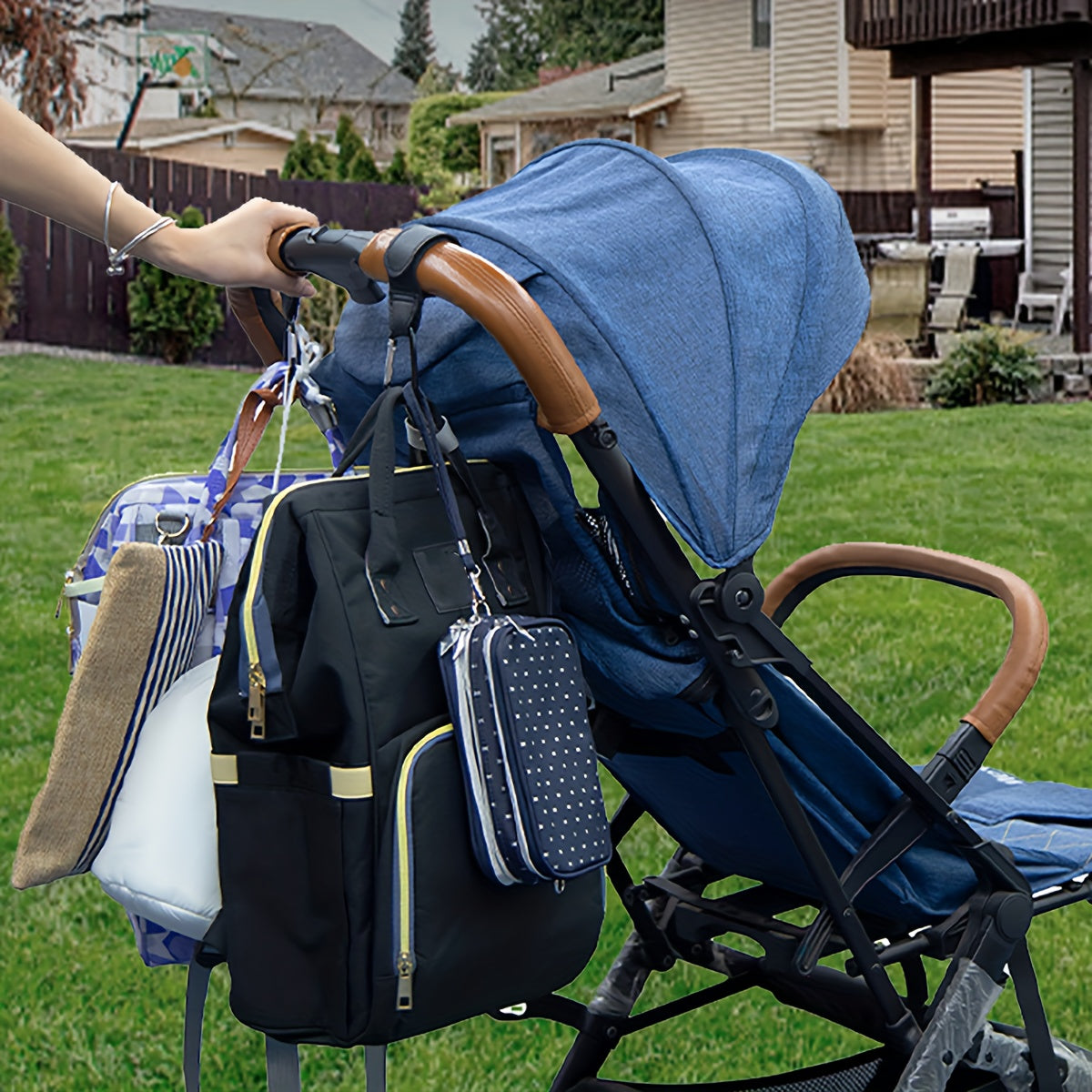 2 ta PU sun'iy charm aravachalar uchun osongina osiladigan sumka tutqichlari, aravachaga ulanishi mumkin bo'lgan aravacha tasmalar