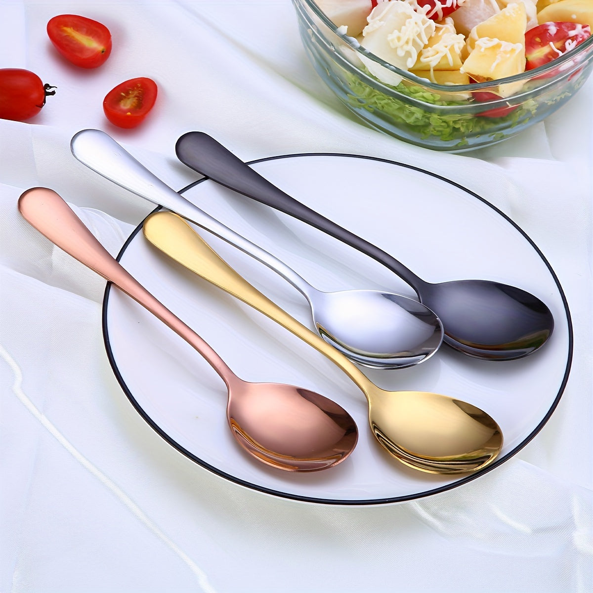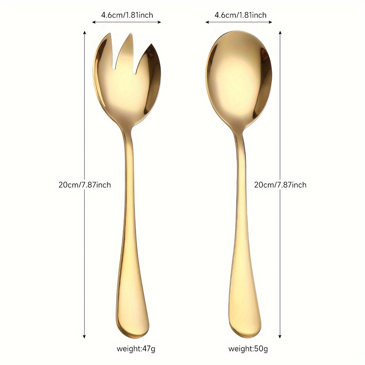 2 dona zanglamas po'latdan yasalgan salat va makaron asboblari, oltin qoplama bilan