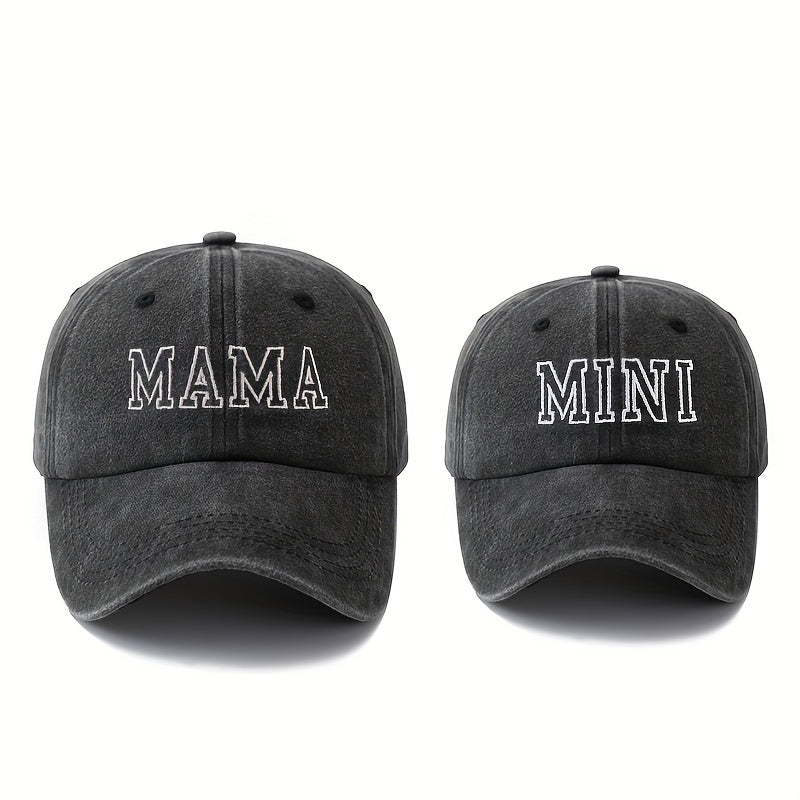 2 ta zamonaviy beysbol shlyapasidan iborat to'plam, yuqori sifatli tikilgan "MAMA" va "MINI" harflari, ochiq havoda faoliyatlar uchun egilgan qirra dizayni, quyoshdan himoya va yengil hip-hop uslubi.