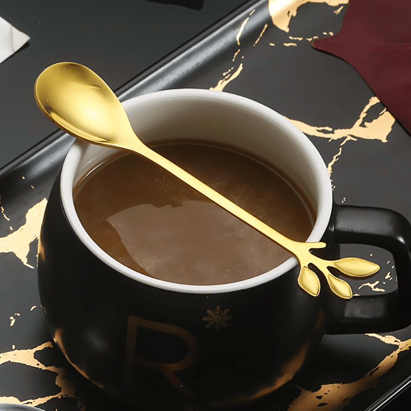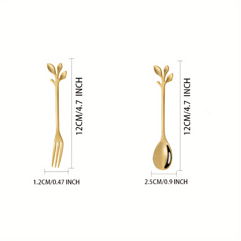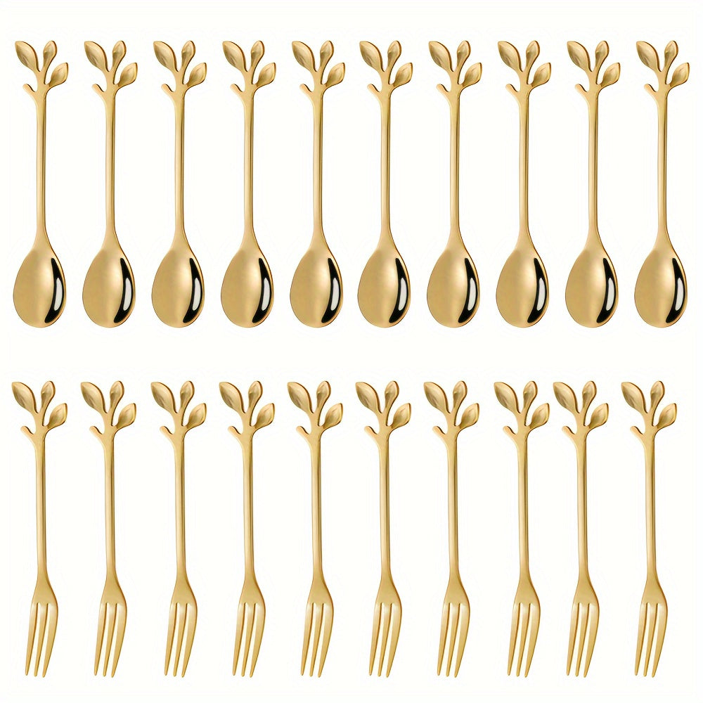 20 ta zanglamaydigan po'latdan yasalgan mini vilkalar va qoshiqchalardan iborat to'plam, oltin barg dizayni bilan