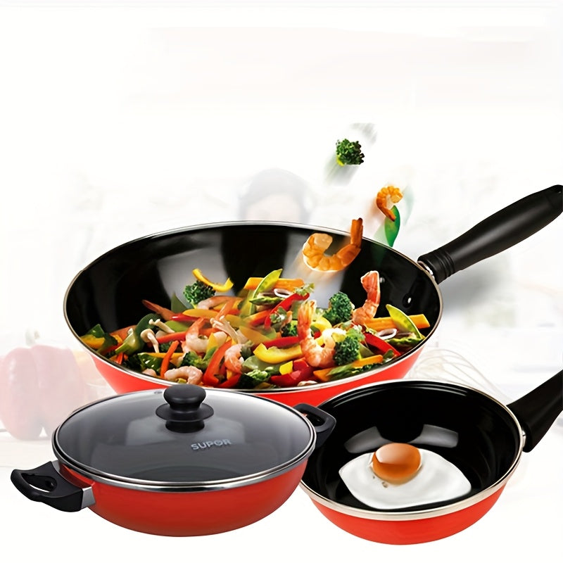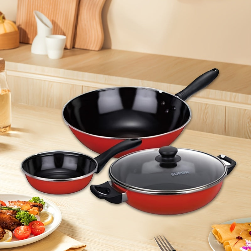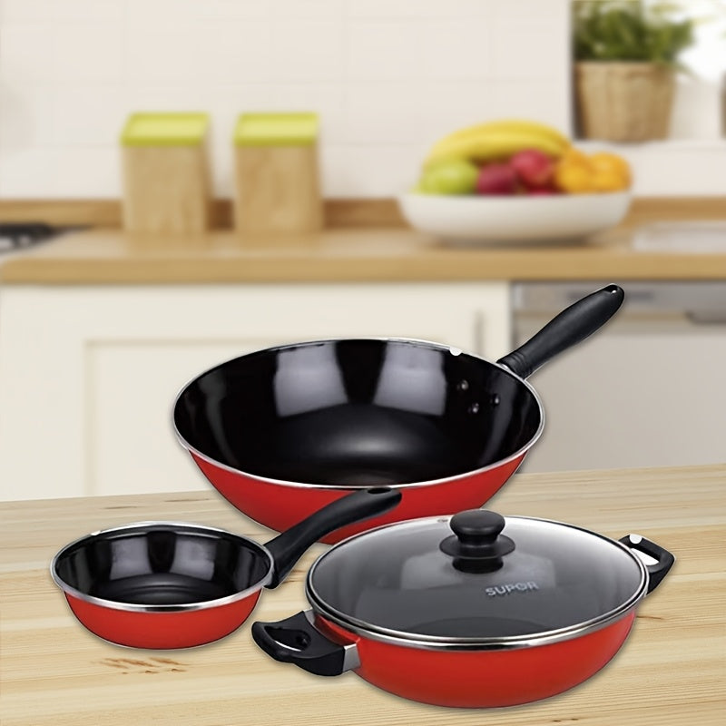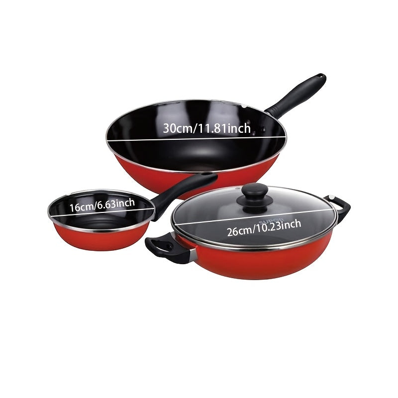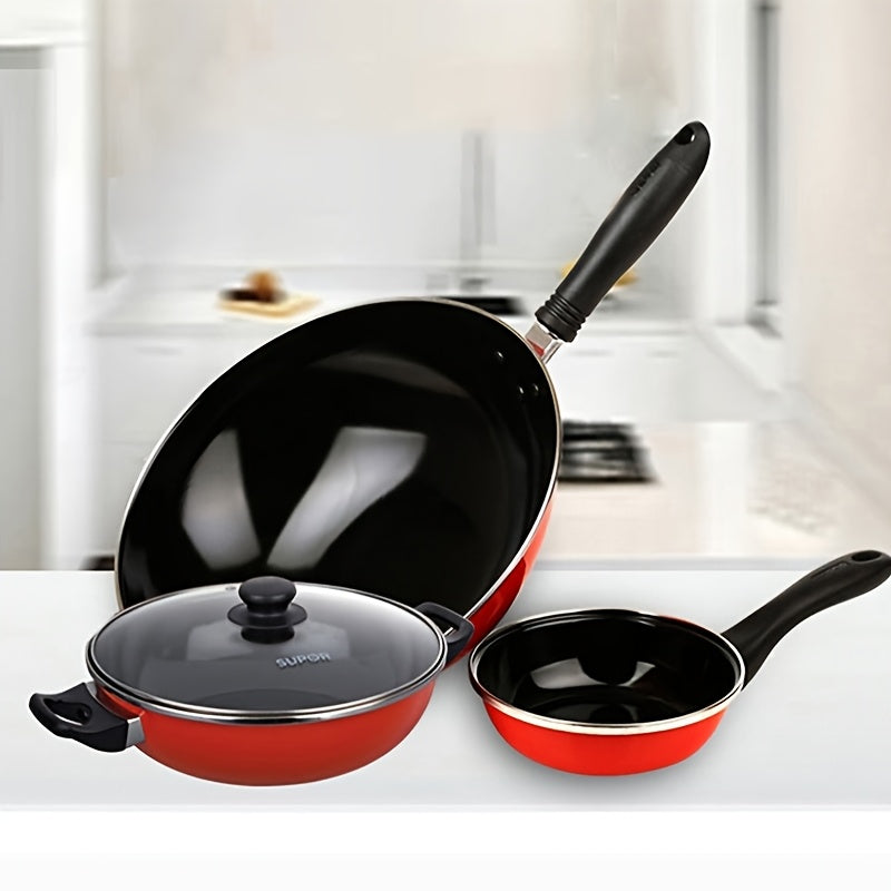 3 ta alyuminiy yopishqoq idishlar to'plami - yengil, tozalash oson, mustahkam qopqoq va qulay tutqichlar - 7" qovurish panasi, qopqoq bilan 9" chuqur skovorodka, 1qt va 2qt sous idishlari, 4qt golland qozoni