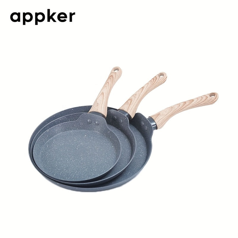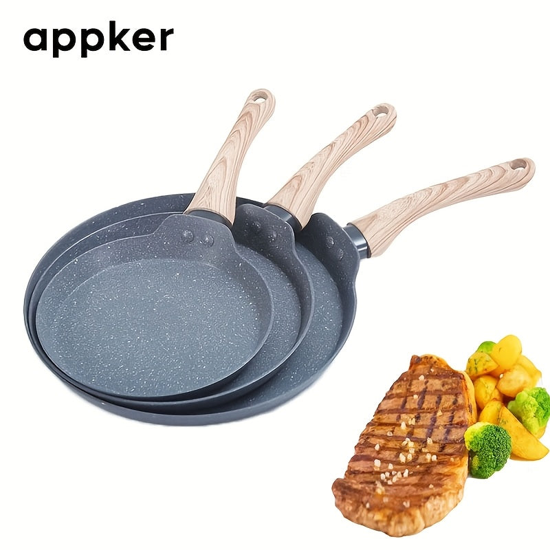 Gaz va induksiya bilan pishirish uchun 3 ta qismi bo'lmagan qattiq temir qovurilgan panlar to'plami, idish yuvish mashinasiga mos