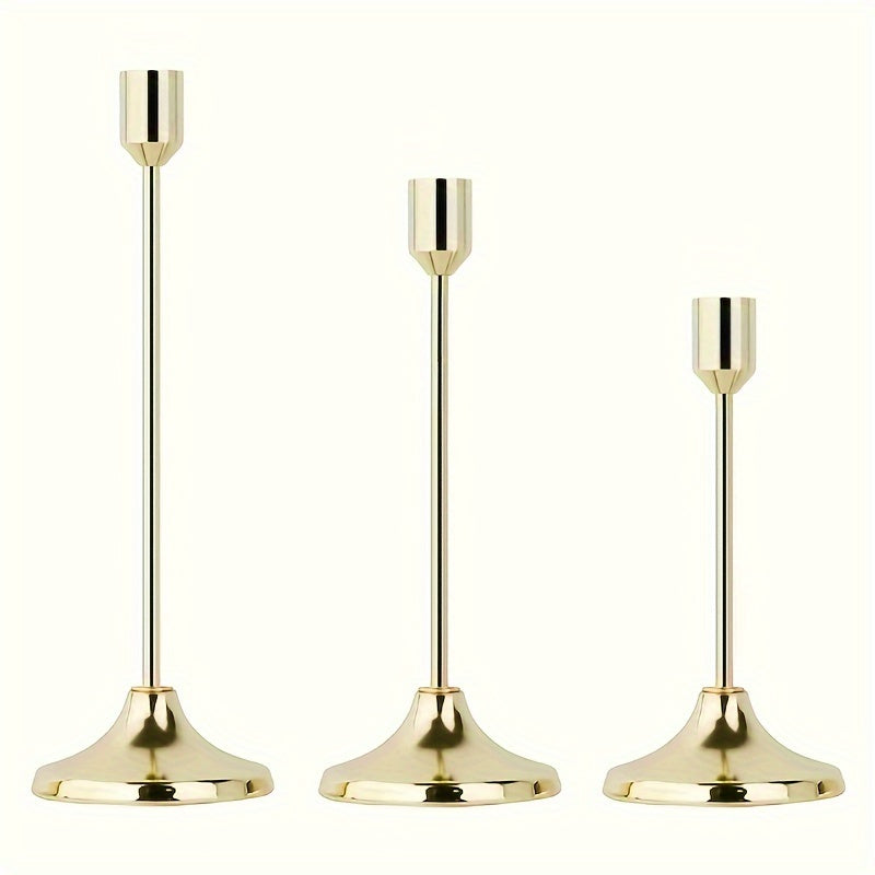 3 ta nafis metall sham ushlagichlar to'plami, oltin va pushti oltin qoplamada, turli bayram tadbirlari uchun mukammal. Mustahkam, yig'ish oson, uy va mehmonxona bezatish uchun ideal. (Shamlar kiritilmagan).