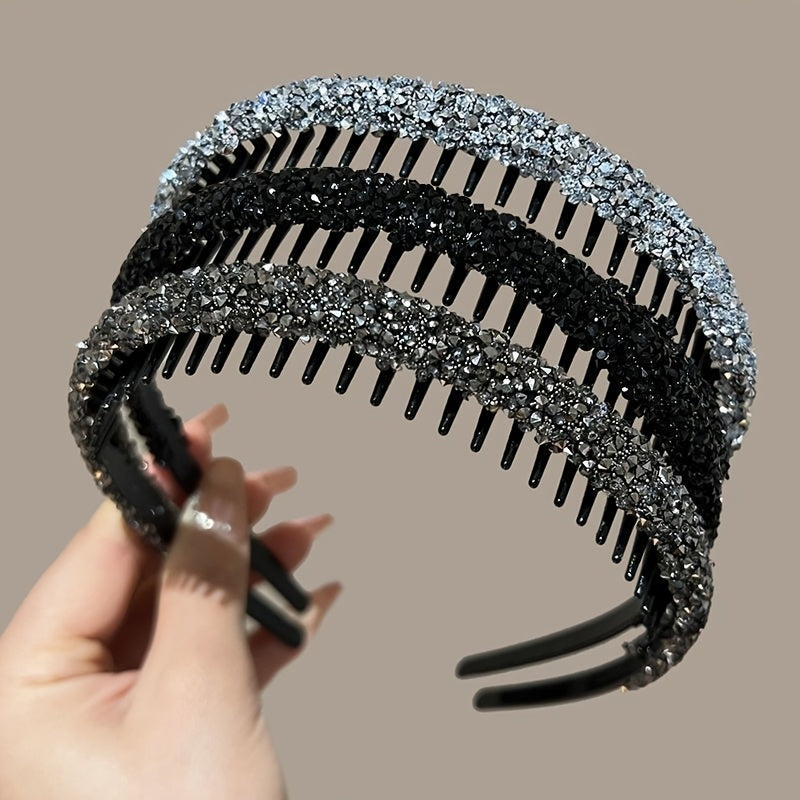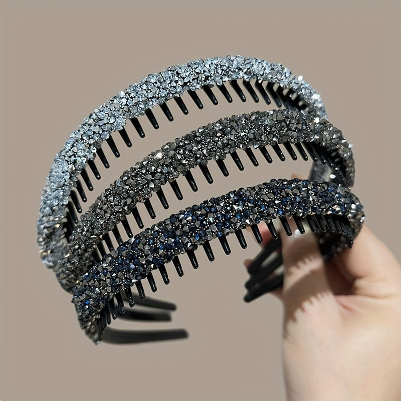 3 ta Nafis Rhinestone Boshbandlar to'plami - Tishli, Silliq, Sochni Usulga Keltirish va Yuvish uchun Mukammal