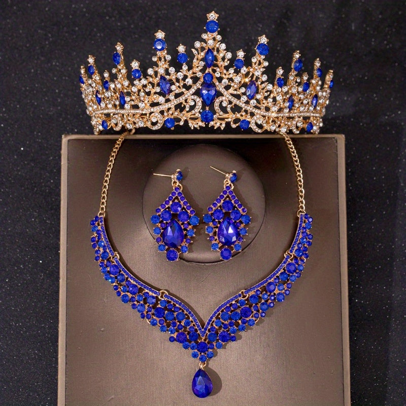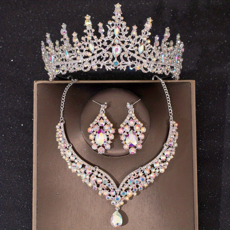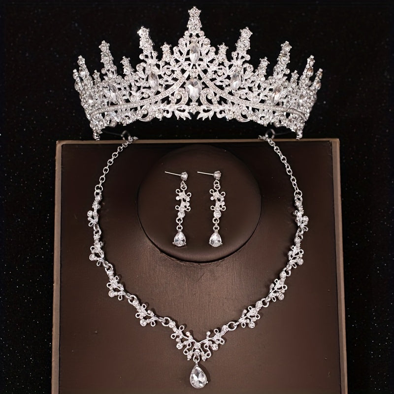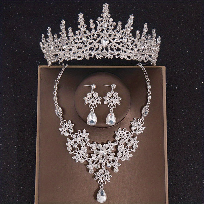3 ta kumush kristalli to'y zargarlik buyumlari, taqilgan taqinchoqlar, taqinchoqlar, tiara, soch aksessuarlari to'plami