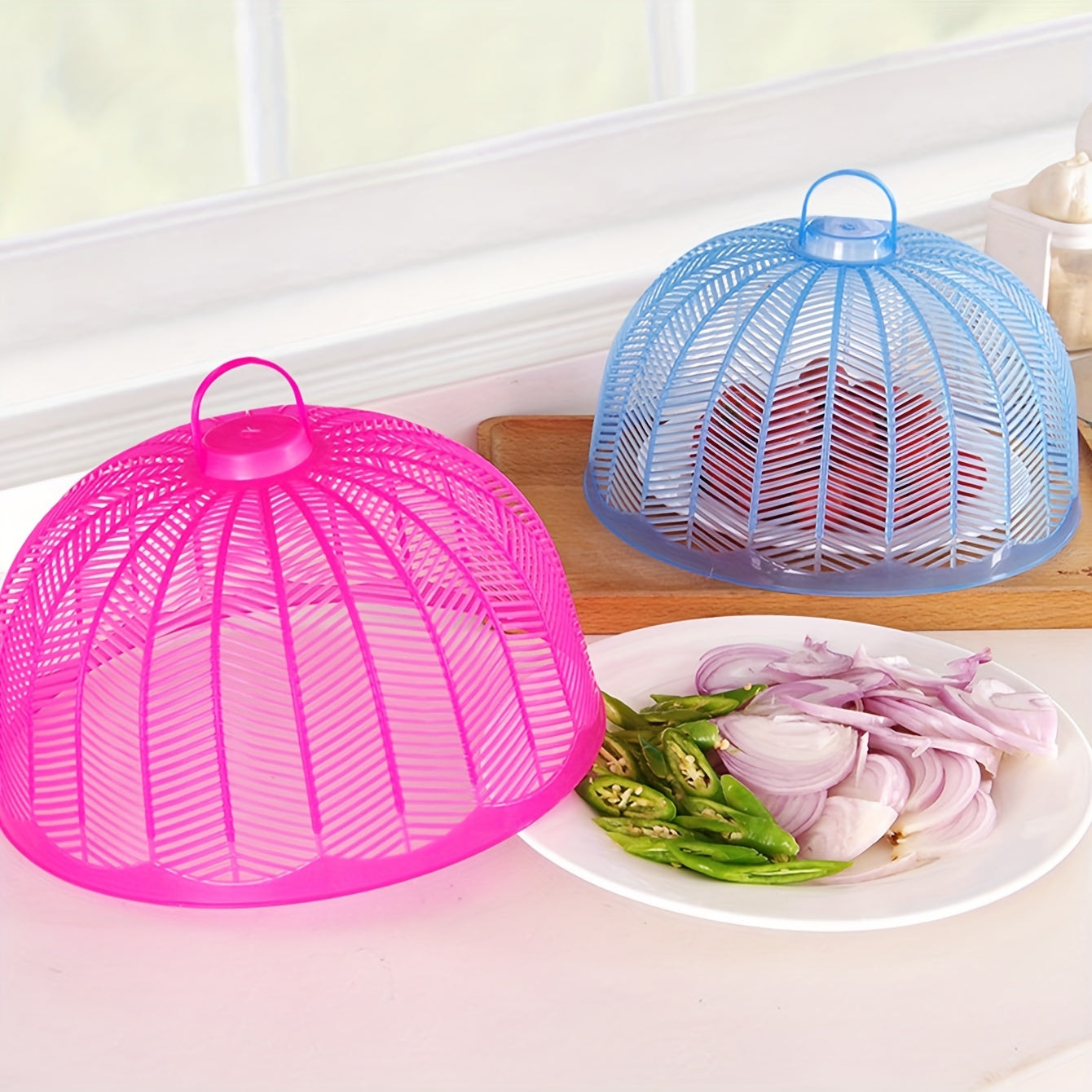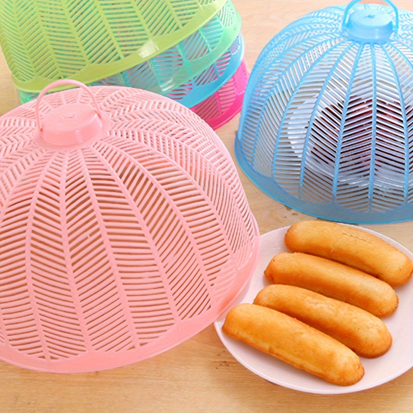 3 ta plastik oziq-ovqat qopqog'i to'plami, rang-barang to'rli ekranlar bilan ochiq havoda foydalanish uchun. Pikniklar, partiyalar va oshxonada idishlaringiz va piyolalaringizni hasharotlar, qurtlar va changdan himoya qiling.
