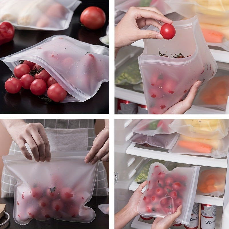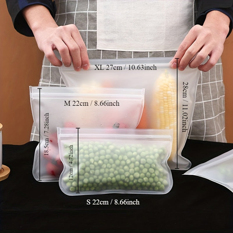 3 ta silikon qayta ishlatiladigan sumka to'plami, kichik, o'rta, juda katta, suyuqlik o'tkazmaydigan oziq-ovqat saqlash