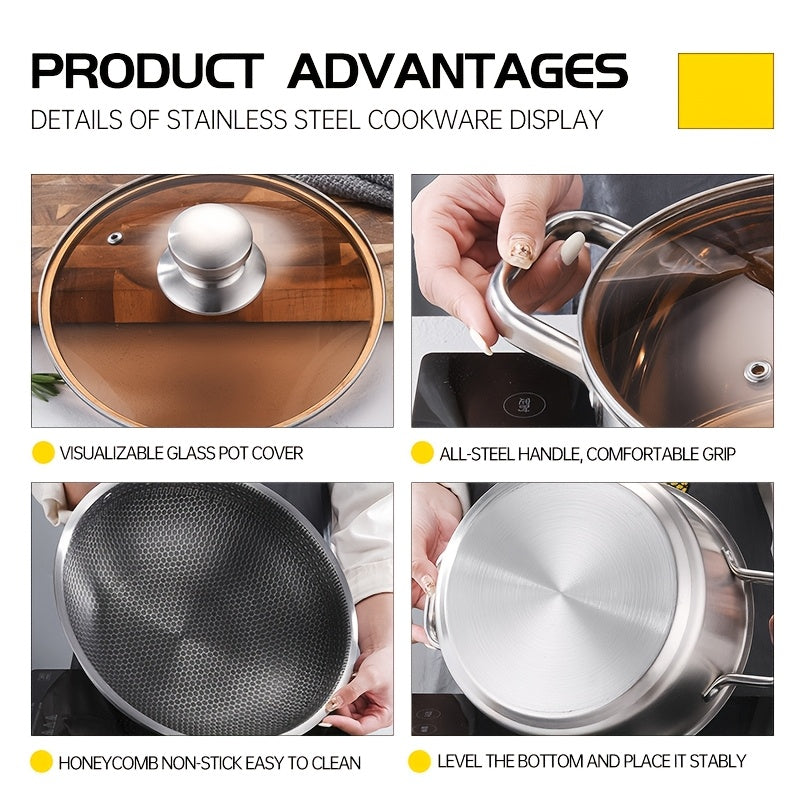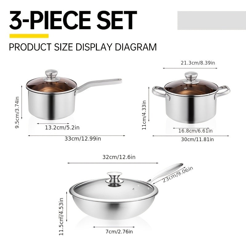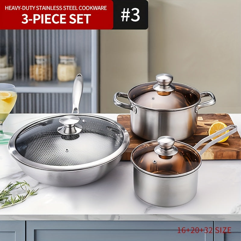 3 ta zanglamas po'latdan yasalgan oshxona buyumlari to'plami - Qorovul, sosli qozon va qovurdoqni o'z ichiga oladi, qalin qurilishi bilan - Uy oshpazlari va professional oshpazlar uchun ideal