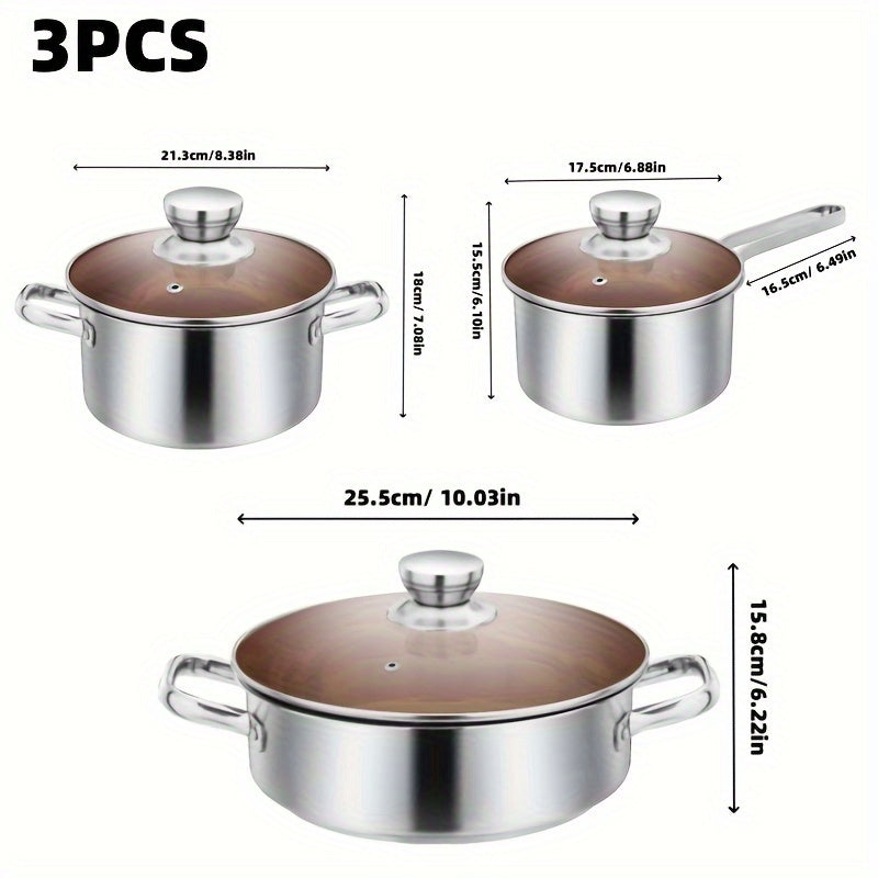 3 ta zanglamaydigan po'latdan yasalgan idishlar to'plami, qopqog'lar bilan, induksiya mos, rang-barang sovg'a qutisi