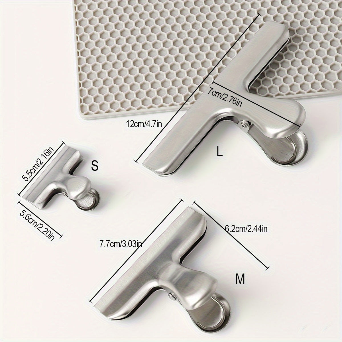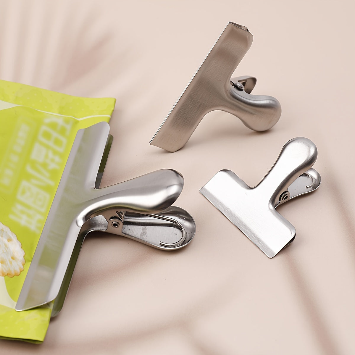 3 ta zanglamas po'latdan yasalgan oziq-ovqat muhrlash kliplari to'plami, ko'p maqsadli T-shaklidagi oshxona asboblari, uyda oziq-ovqatni yangi saqlash uchun snack sumkalarini muhrlash uchun ideal