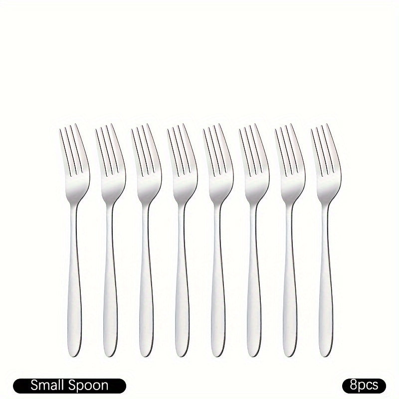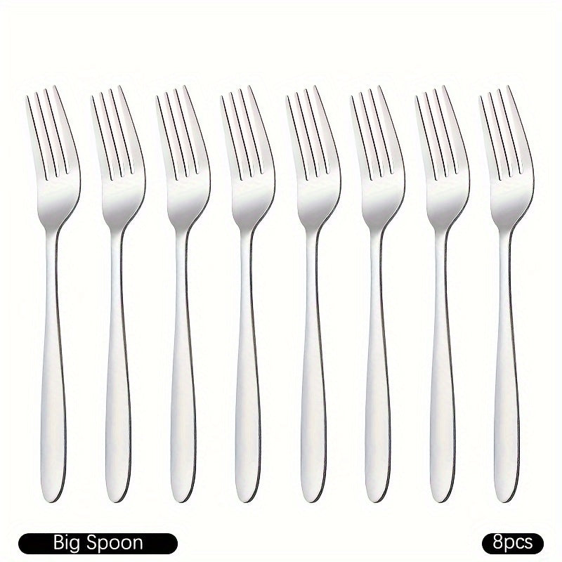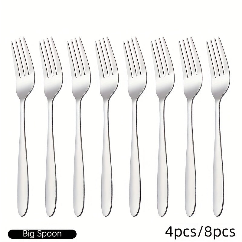 4/8 ta ovqat vilkalaridan iborat to'plam, zanglamas po'latdan tayyorlangan va oynaga o'xshash silliq tugatish bilan, uyda yoki restoranlarda foydalanish uchun mukammal. Qaynatgichda yuvish mumkin.