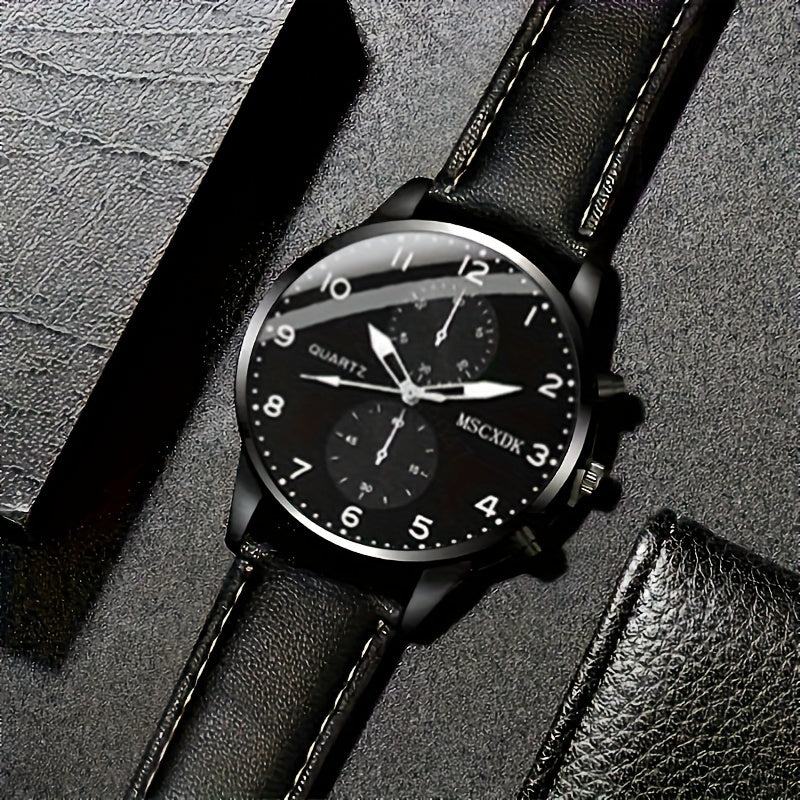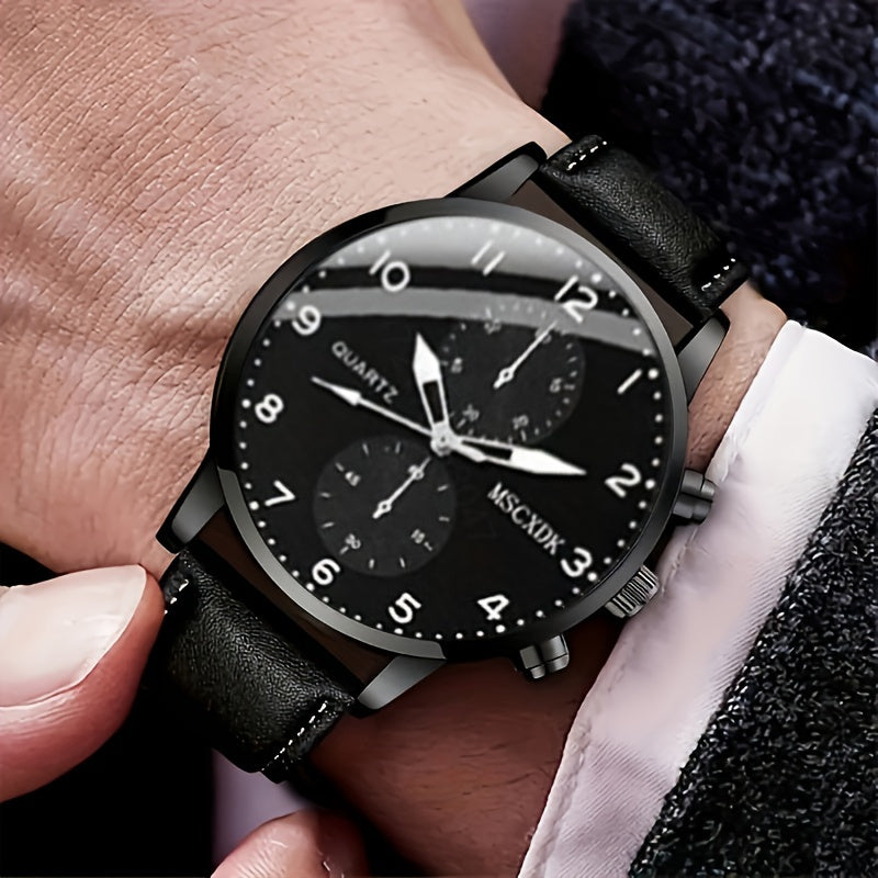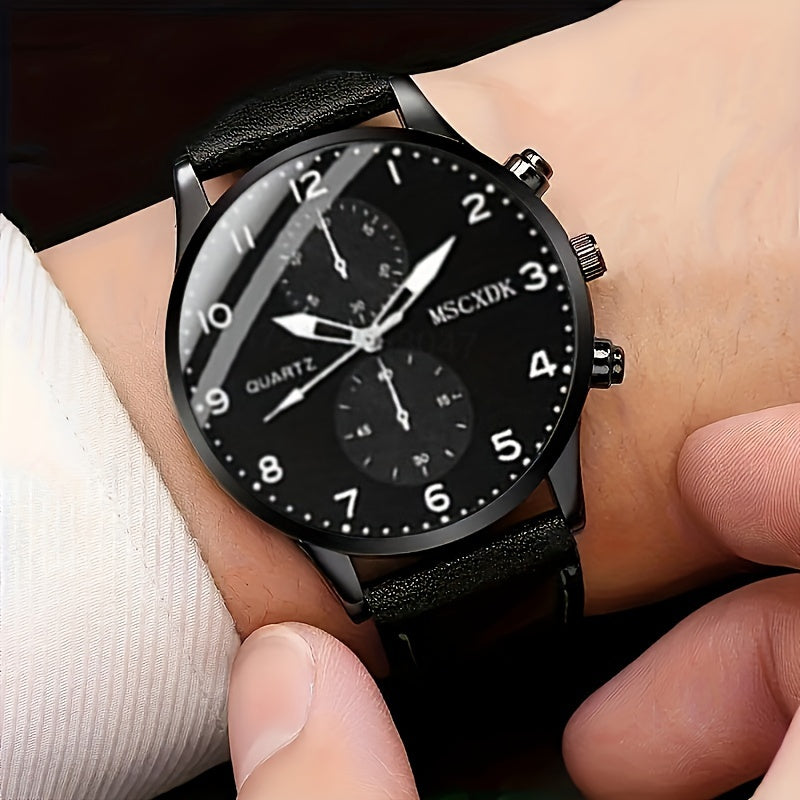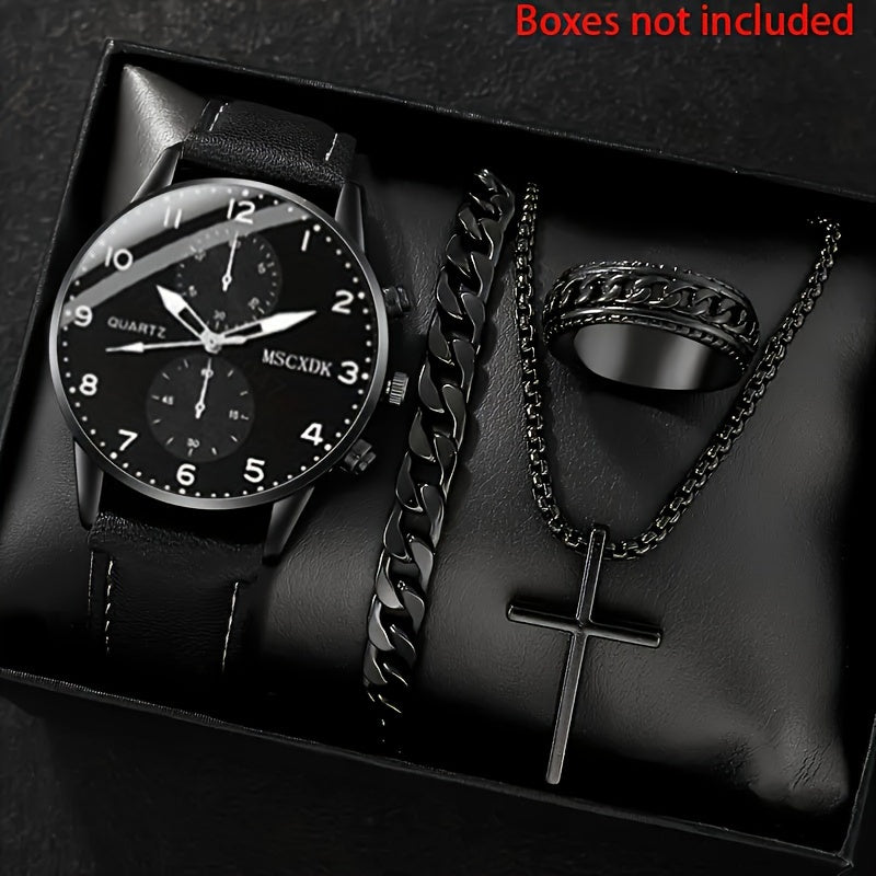 To'rt nafar erkaklar uchun quarts soatlari to'plami, dumaloq alloy korpuslar va faux charm bilan ta'minlangan taqinchalar bilan