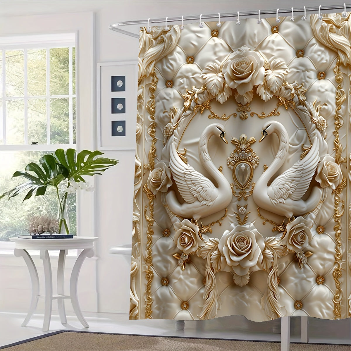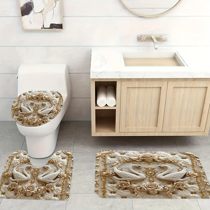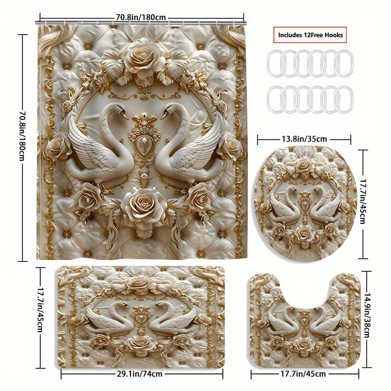4 dona 3D qush shaklidagi bosma dush pardasi to'plami, marvarid printi bilan, suv o'tkazmaydigan parda, sirpanmaydigan mat, hojatxona qopqog'i qoplamasi, hammom mati va 12 ta plastik ilgichlarni o'z ichiga oladi. Hammomni bezatish uchun ideal.
