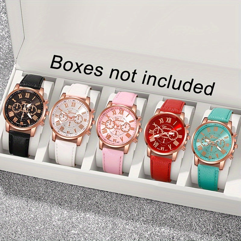 Zinc alloy korpuslari va charm taqsimlari bilan 5 ta ayollar uchun kundalik quarts soatlar to'plami